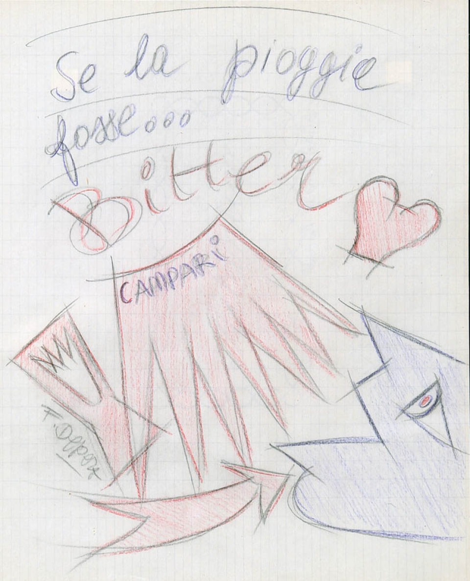 FORTUNATO DEPERO 1892 - 1960 " Se la pioggia fosse... Bitter Campari ", 1930/31 Matite colorate su carta, cm. 27 x 22 Firmato Autentica Archicio Maurizio Scudiero n. FD-3862-DIS Prov. Collezione Privata