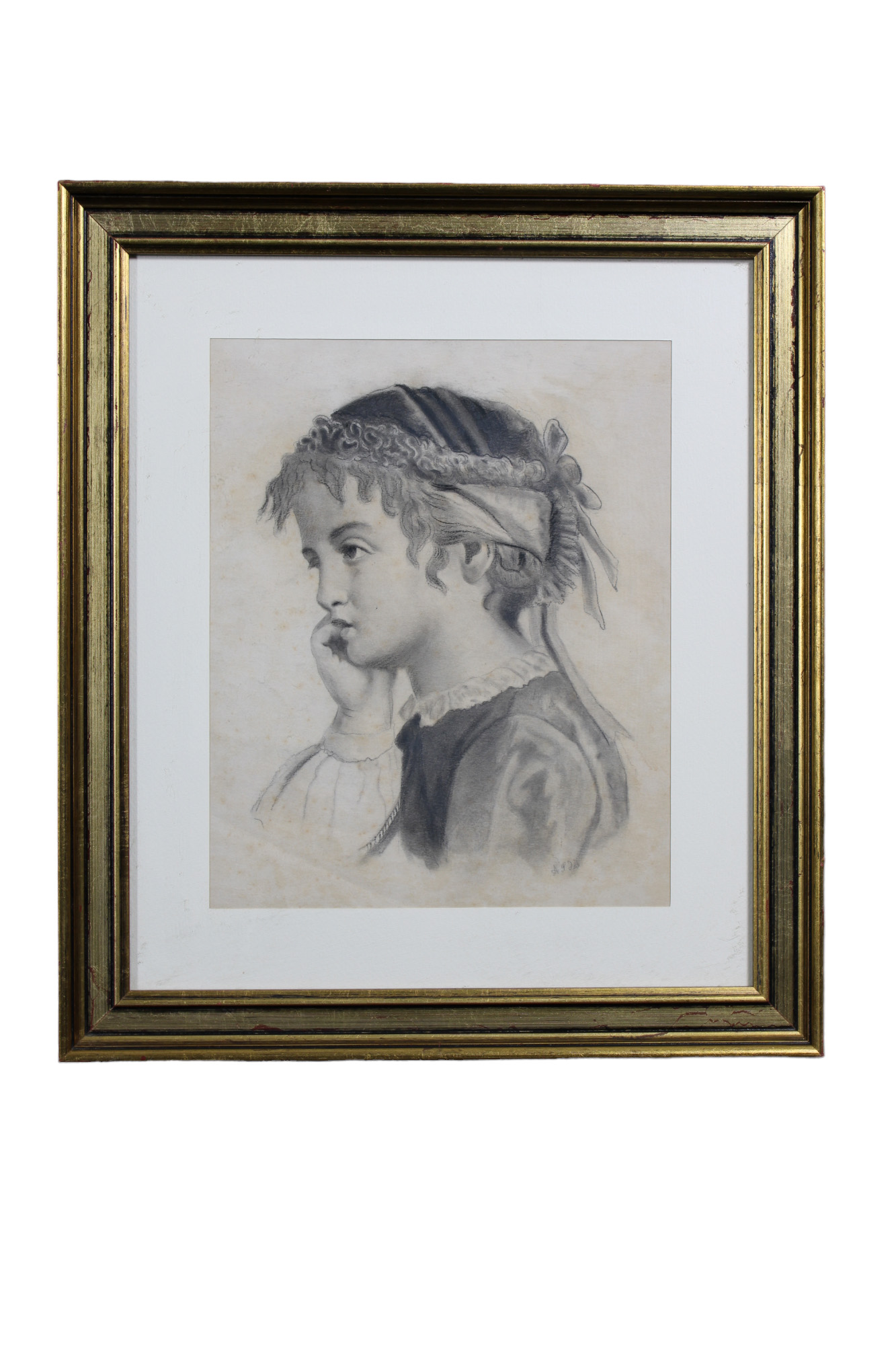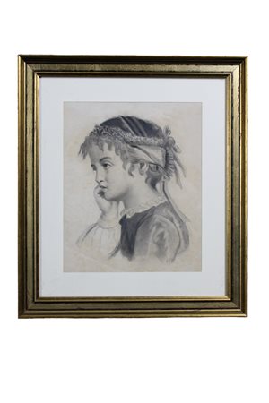 DISEGNO A MATITA studio di Volto di fanciulla h cm 30 x 25
