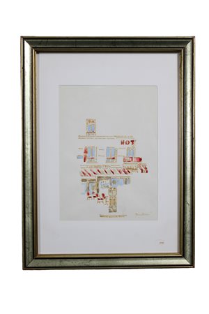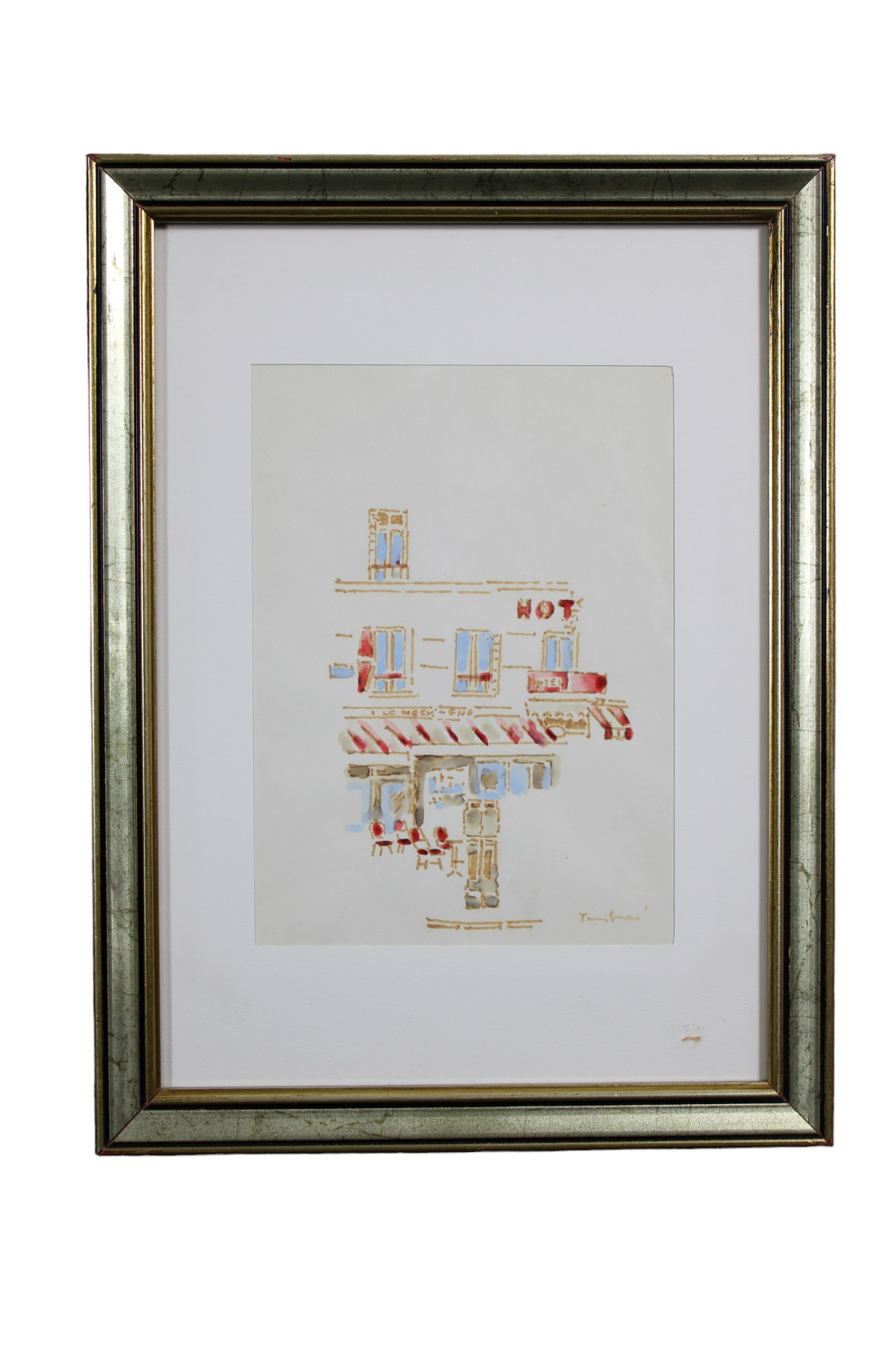 TAMBURI acquerello raffigurante Paesaggio urbano h cm 23 x 16,5