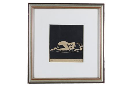 LOTTO COMPOSTO DA 2 litografie una a firma Raffaele Piraino raffigurante figura femminile e una a firma illegibile raffigurante pigna h cm 50 x 35 / h cm 30 x 30