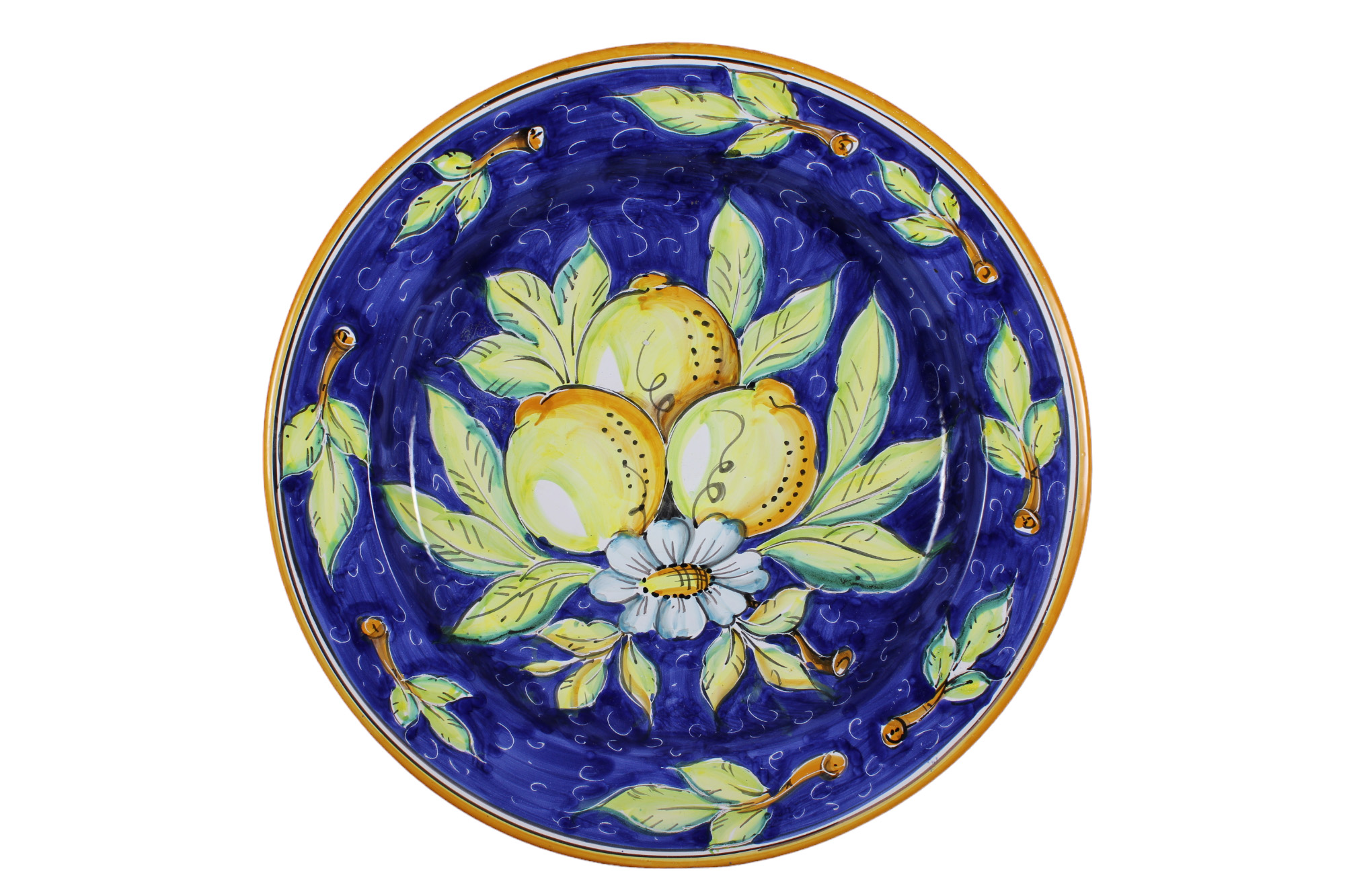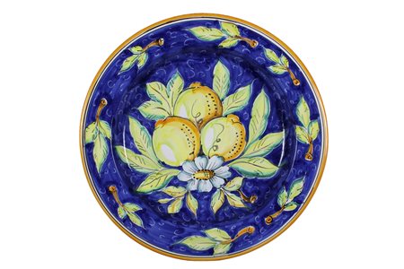 GRANDE PIATTO in maiolica dipinta raffigurante agrumi cm Ø 58,5