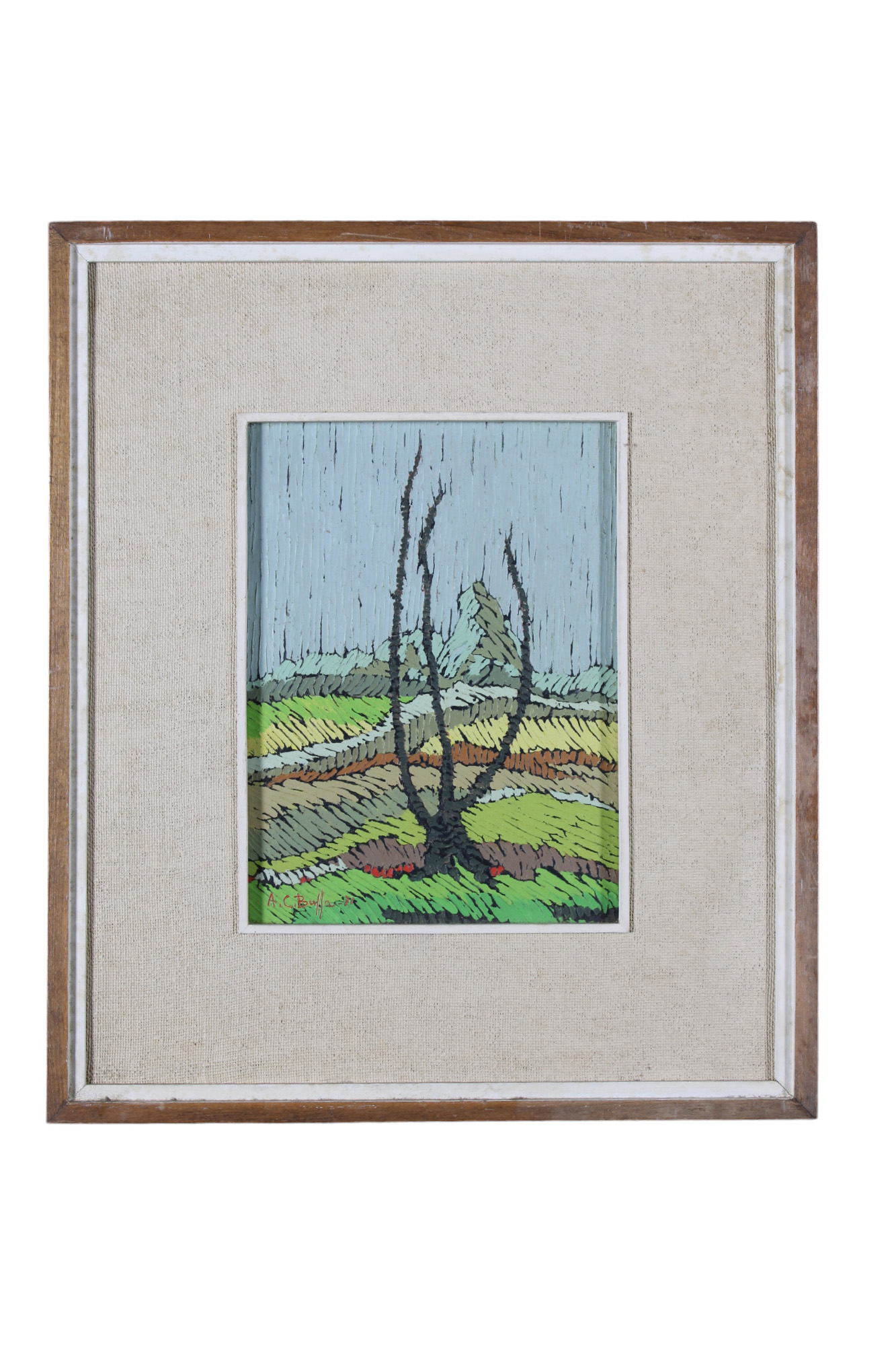 A.C. BUFFA olio su tavola raffigurante paesaggio h cm 23 x 17