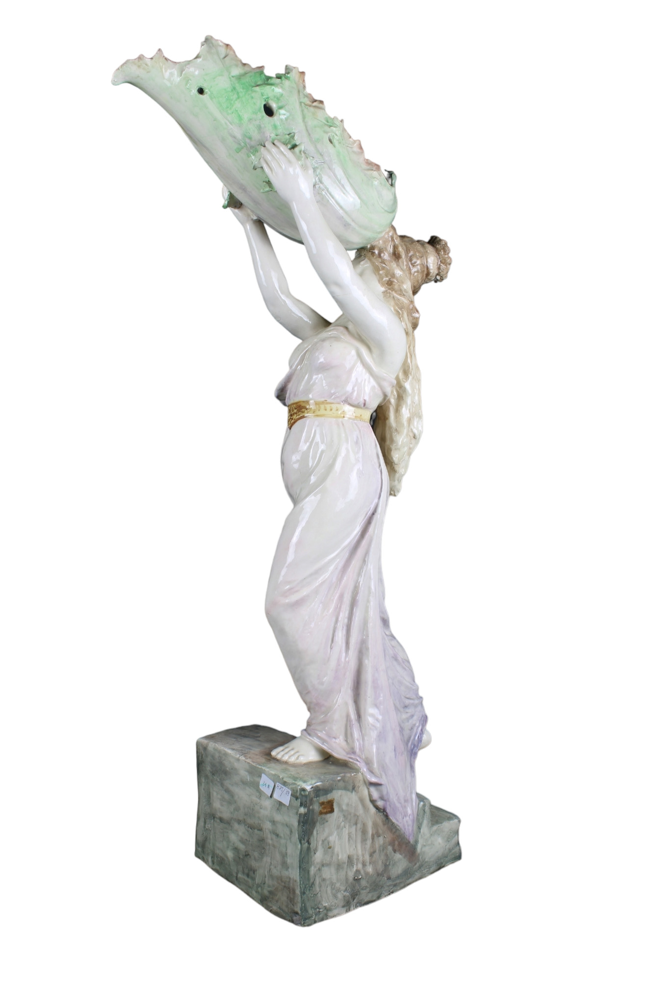 BELLA GRANDE SCULTURA in porcellana policroma raffigurante figura femminile manifattura francese fine XIX secolo h cm 87 x 45 x 21