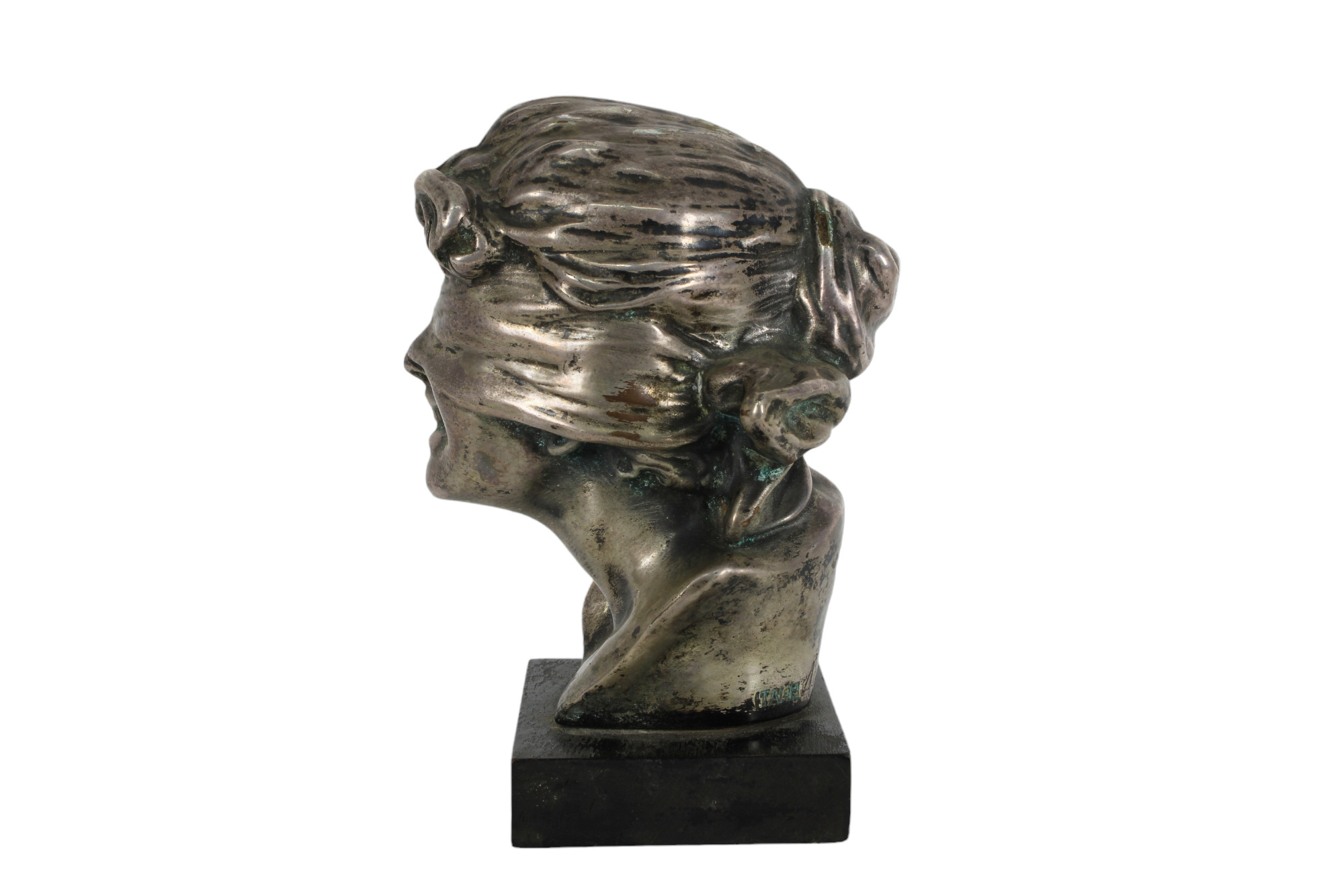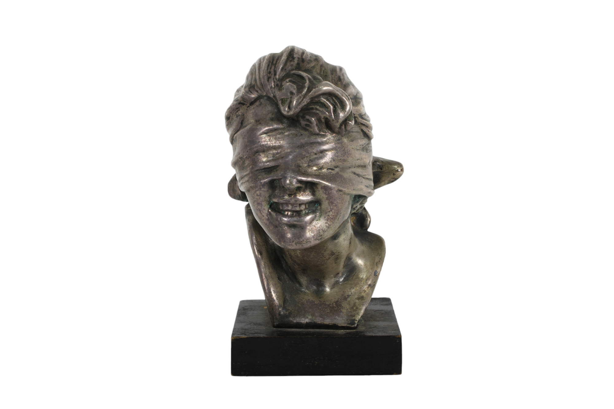 SCULTURA raffigurante la dea bendata in metallo argentato firmata M.FABBRIS Italia XX secolo h cm 18 x 10 x 14