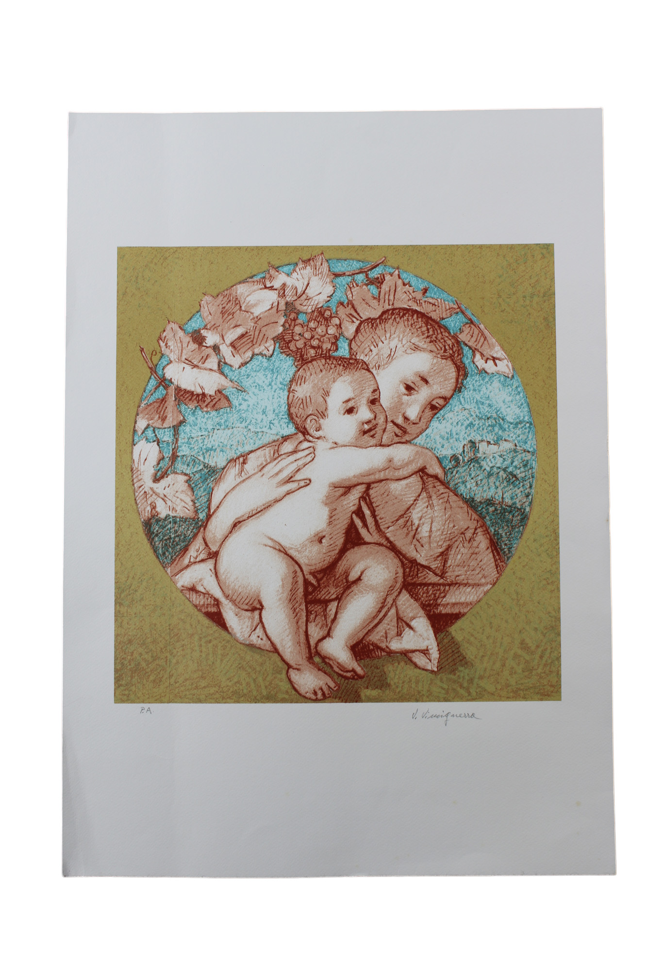 V.VINCIGUERRA litografia prova d'autore Maternità h cm 69 x 49