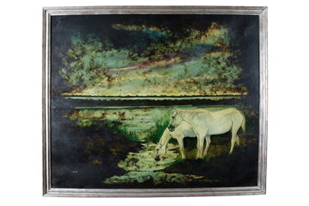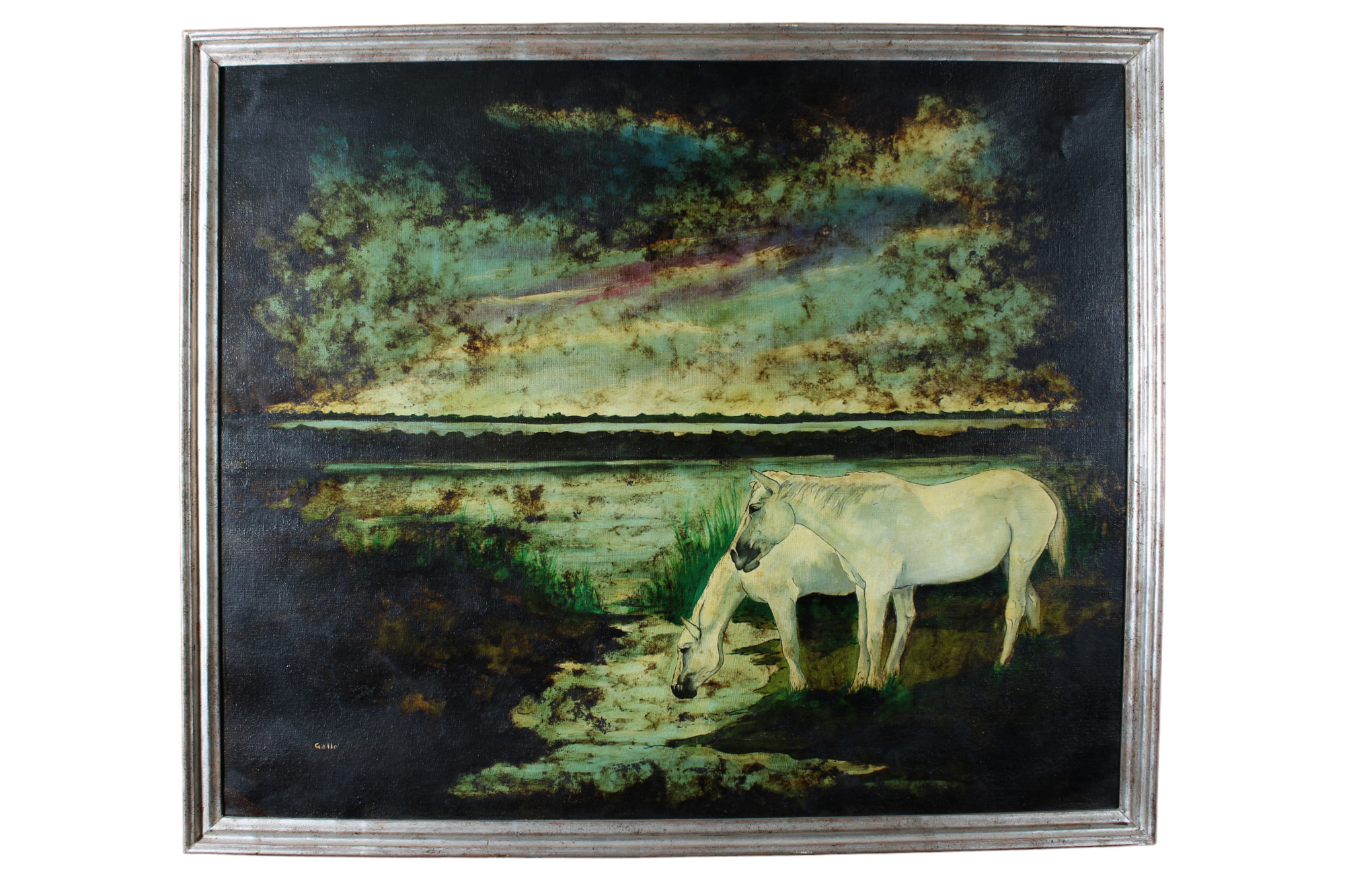 GALLO olio su tela Paesaggio con cavalli h cm 100 x 120