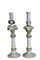 COPPIA CANDELIERI in maiolica dipinta raffigurante personaggi manifattura Caltagirone XX secolo h cm 44 x 13,5
