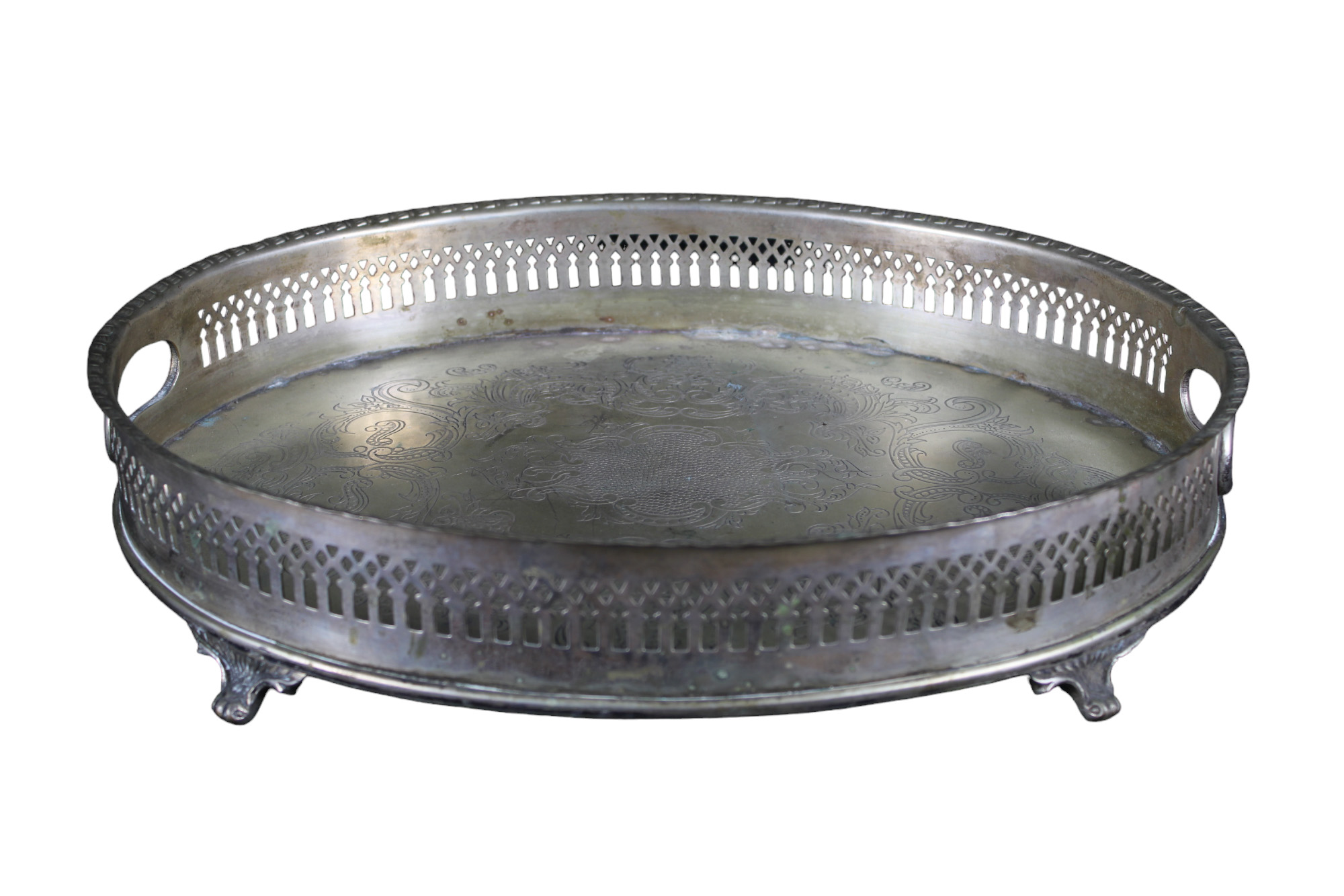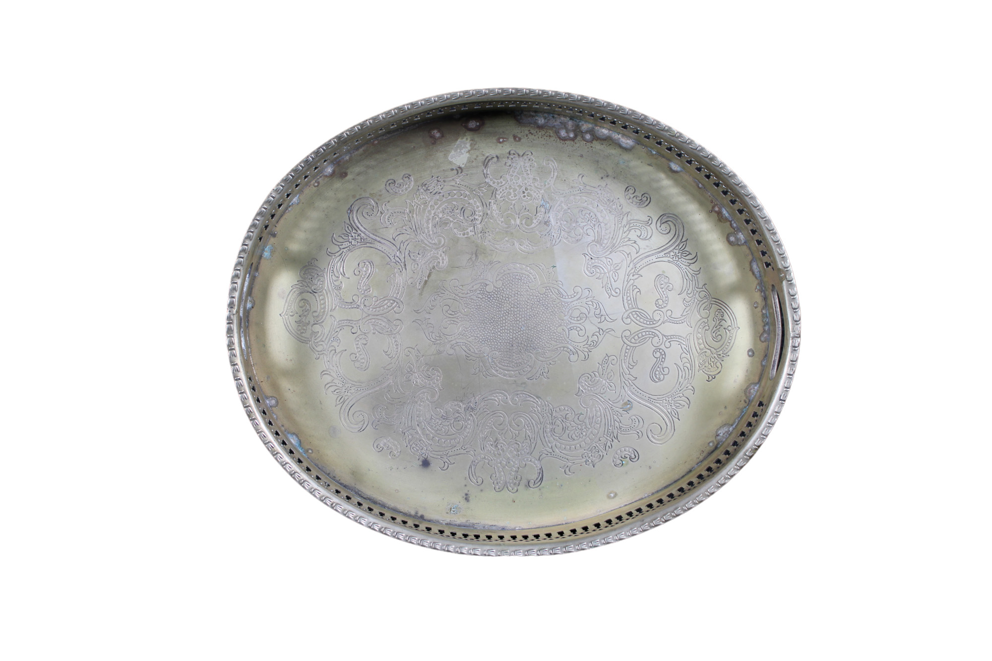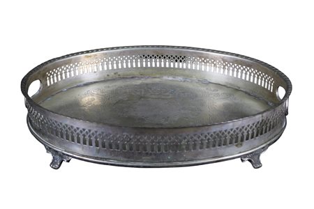 VASSOIO in sheffield traforato e cesellato Inghilterra XIX/XX secolo h cm 9,5 x 44 x 36