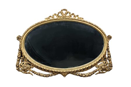 SPECCHIERA in legno riccamente scolpito e dorato di gusto Luigi XVI Francia fine XIX secolo h cm 96 x 140