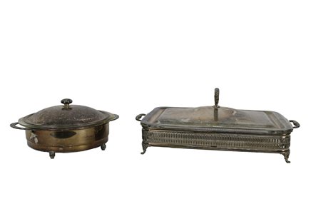 LOTTO DI 2 PORTA VIVANDE CON COPERCHI in sheffield Inghilterra XX secolo misure varie