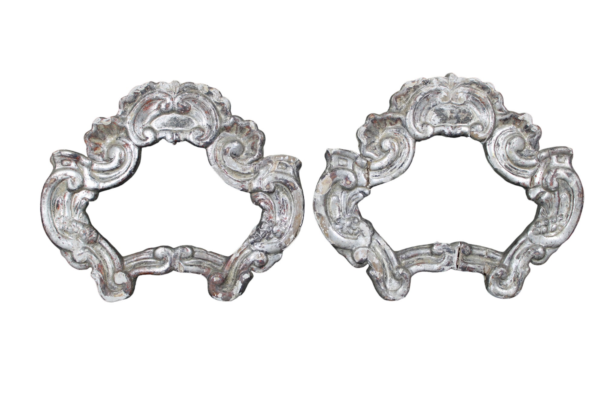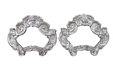 COPPIA DI CORNICETTE in legno scolpito e argentato Sicilia XVIII secolo h cm 25 x 29