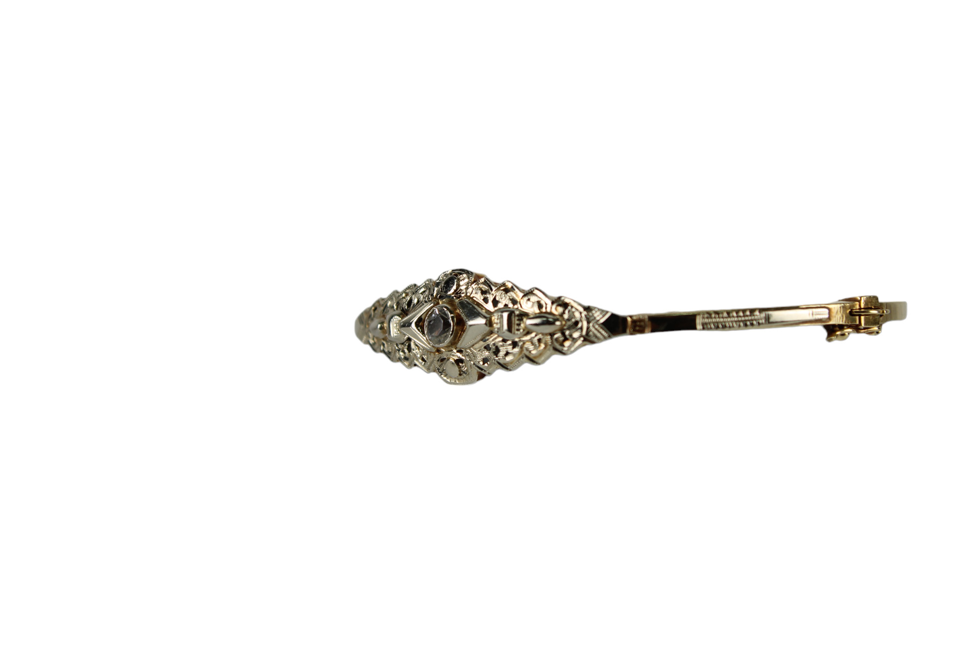 BRACCIALE RIGIDO in oro con coppella in argento cesellato e piccolo smeraldo incastonato grammi 7 Italia primi 900