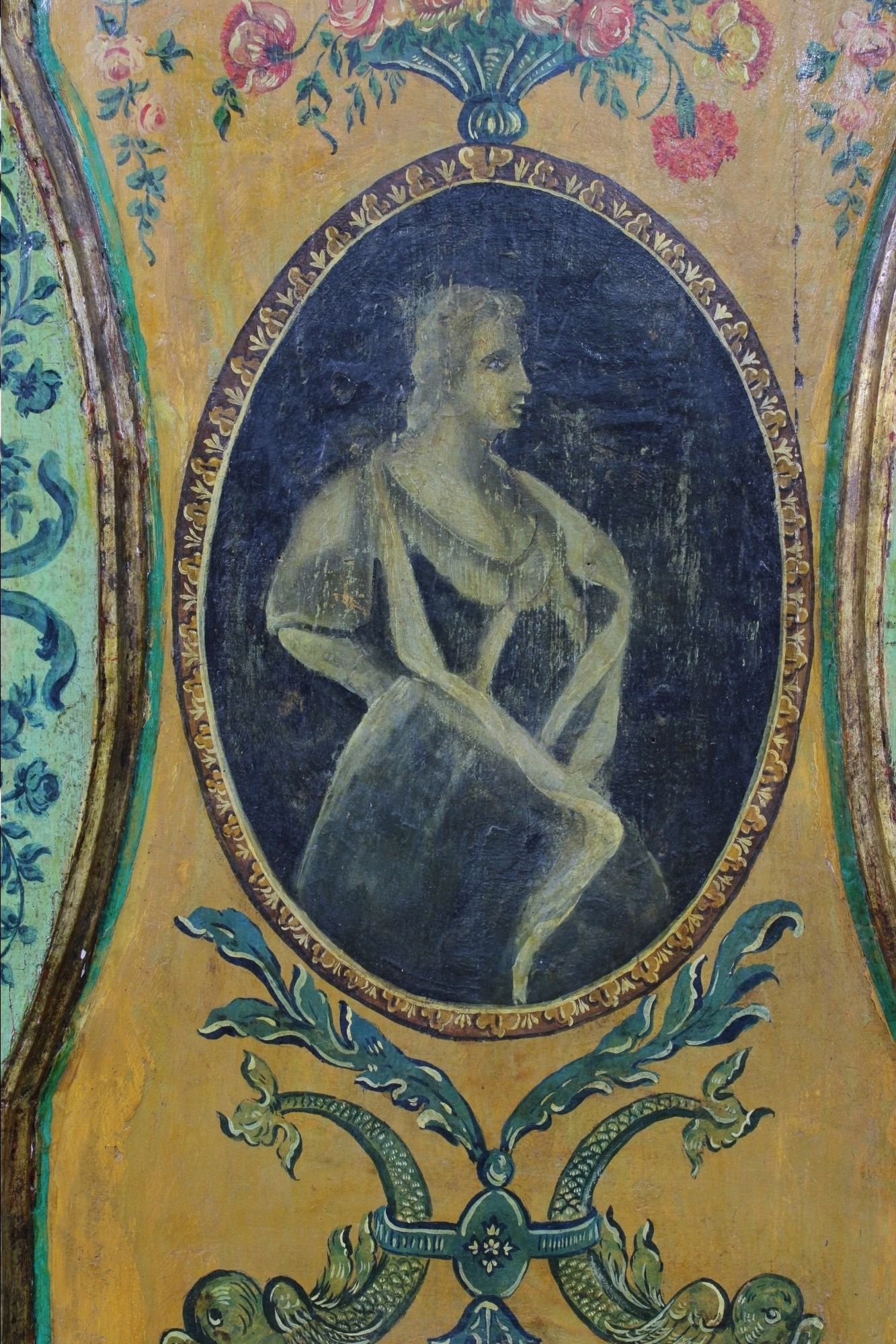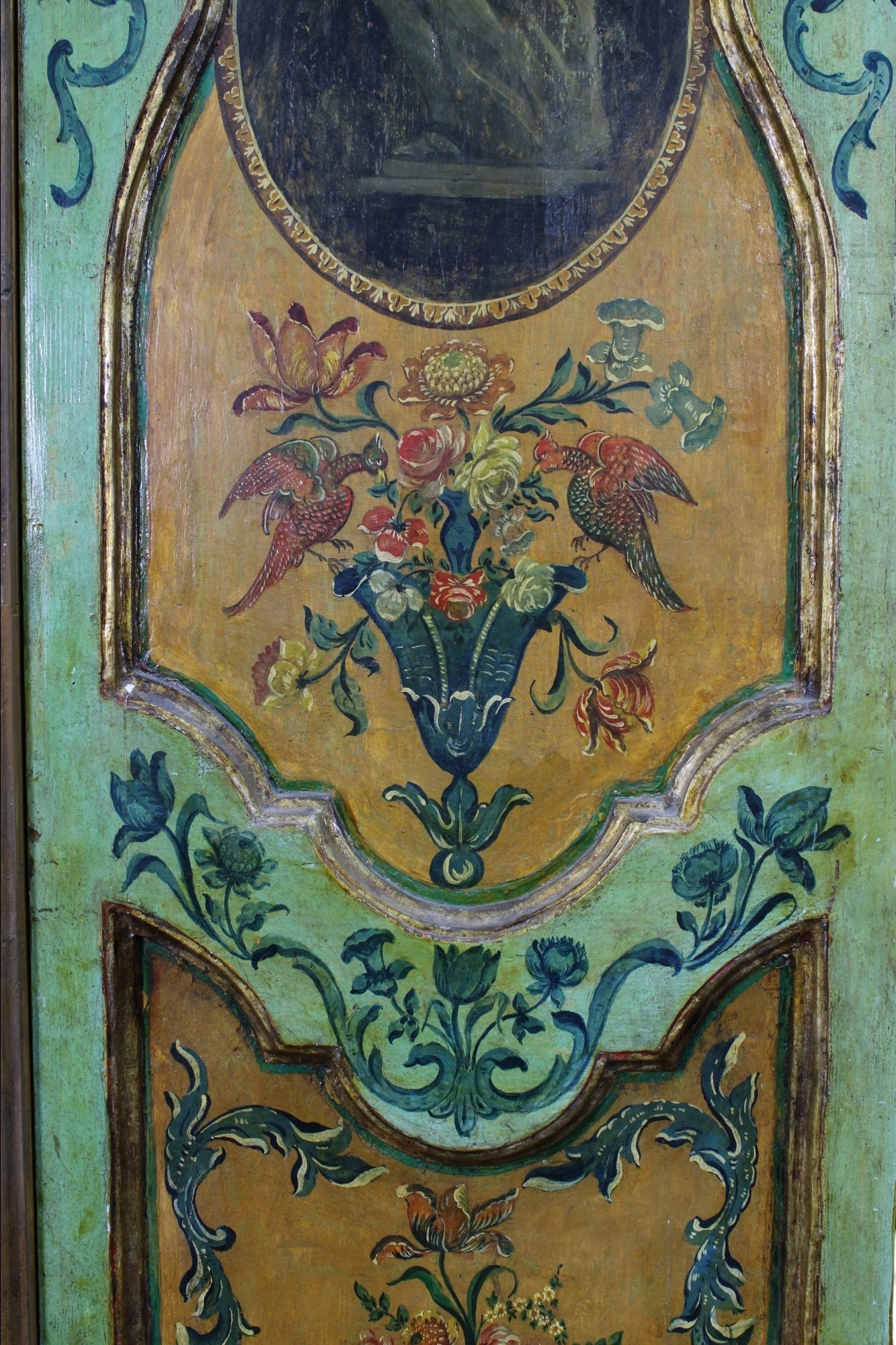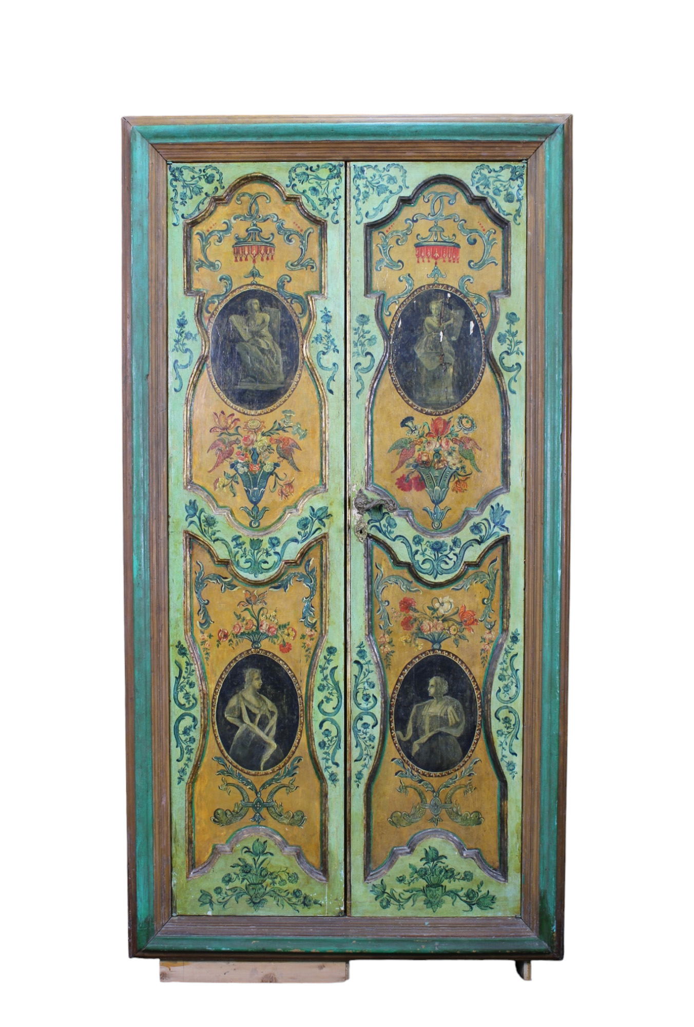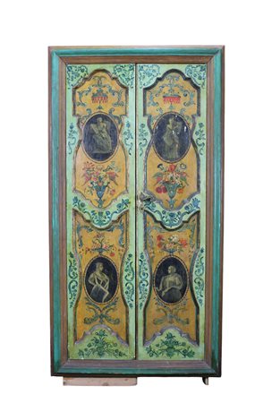 IMPORTANTE PORTA A 2 ANTE in legno laccato e dipinto a motivi floreali dentro riserve raffigurante figure femminili correlata da struttura ad incasso di epoca posteriore Sicilia XVIII secolo h cm 237 x 124 x 50