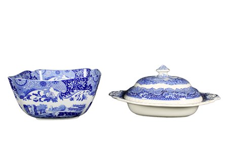 LOTTO COMPOSTO DA 1 legumiera in porcellana e 1 grande ciotola in porcellana manifattura inglese prima metà 900 h cm 12 x 24,5 x 24,5 / h cm 15 x 32 x 24