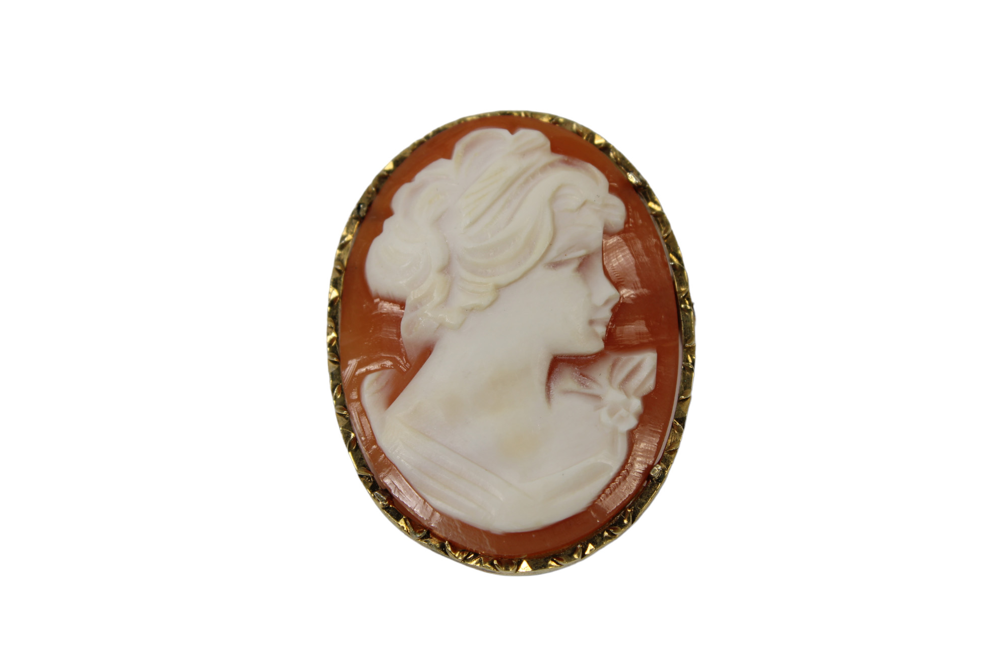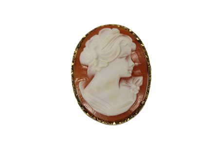 SPILLA CON CAMMEO OVALE con profilo di donna a basso rilievo Napoli primi 900