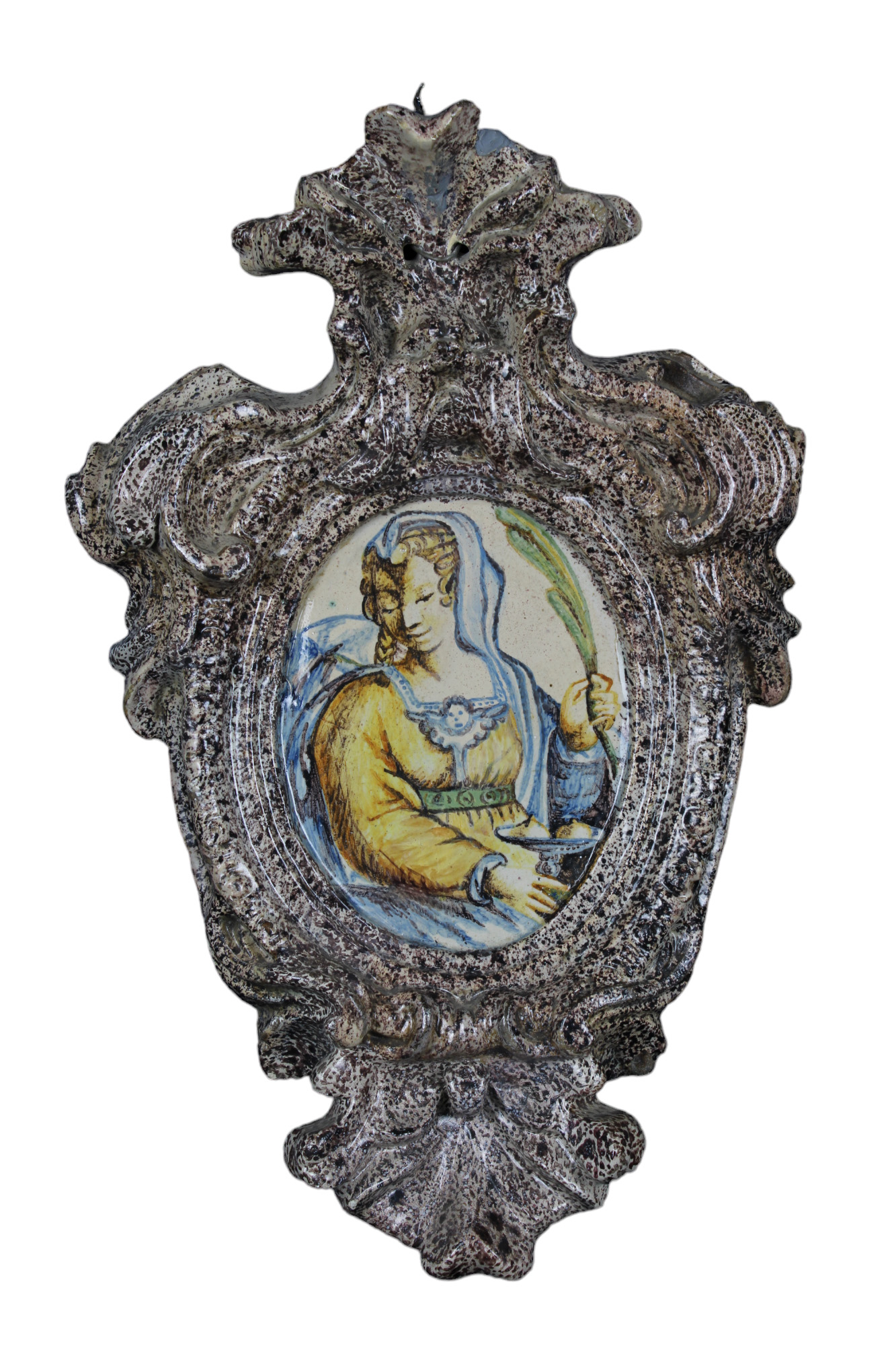 PLACCA in maiolica raffigurante santa Lucia Napoli XVIII secolo h cm 35 x 23