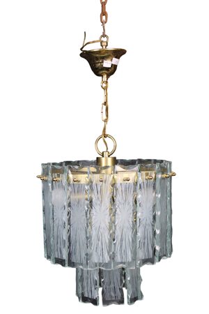 LAMPADARIO A 2 LIVELLI attribuibile a Fontana Arte-04 Venini Venezia anni 70 h cm 60 x 33