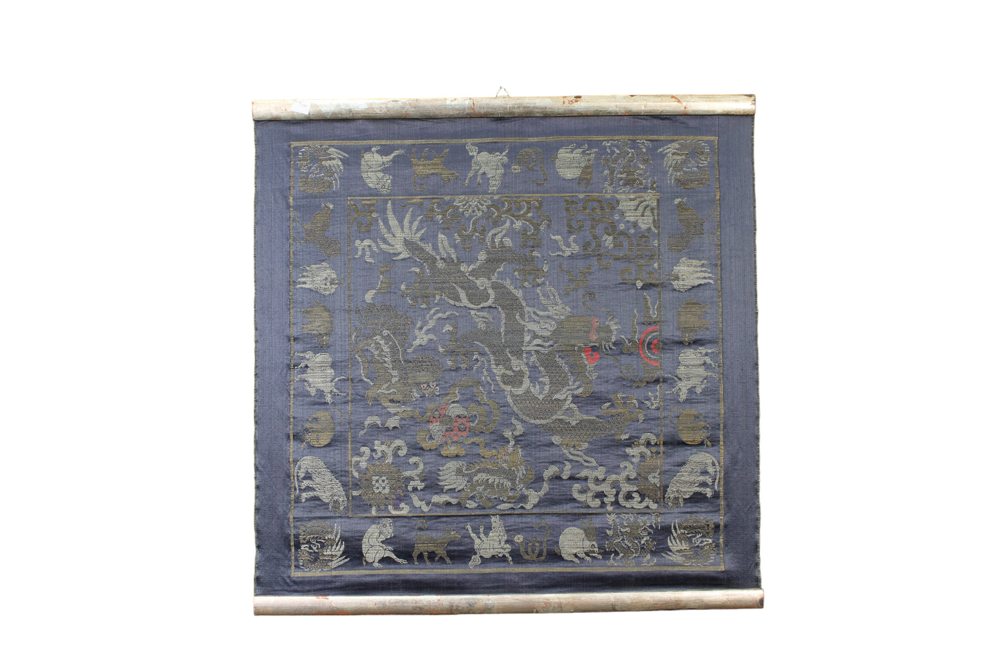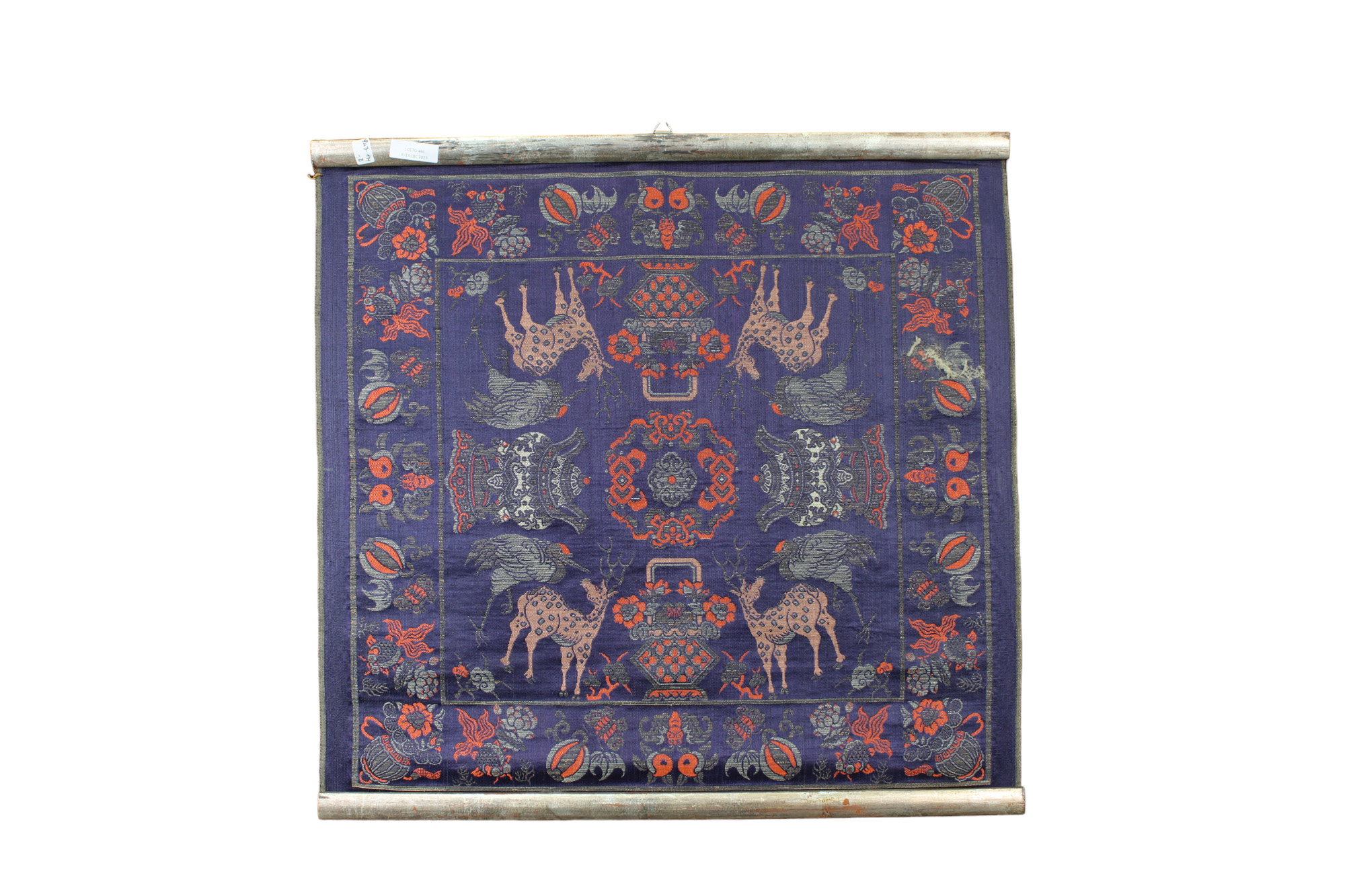 LOTTO DI 2 PICCOLI ARAZZI in seta decorata a motivi orientali manifattura orientale XX secolo h cm 52 x 54