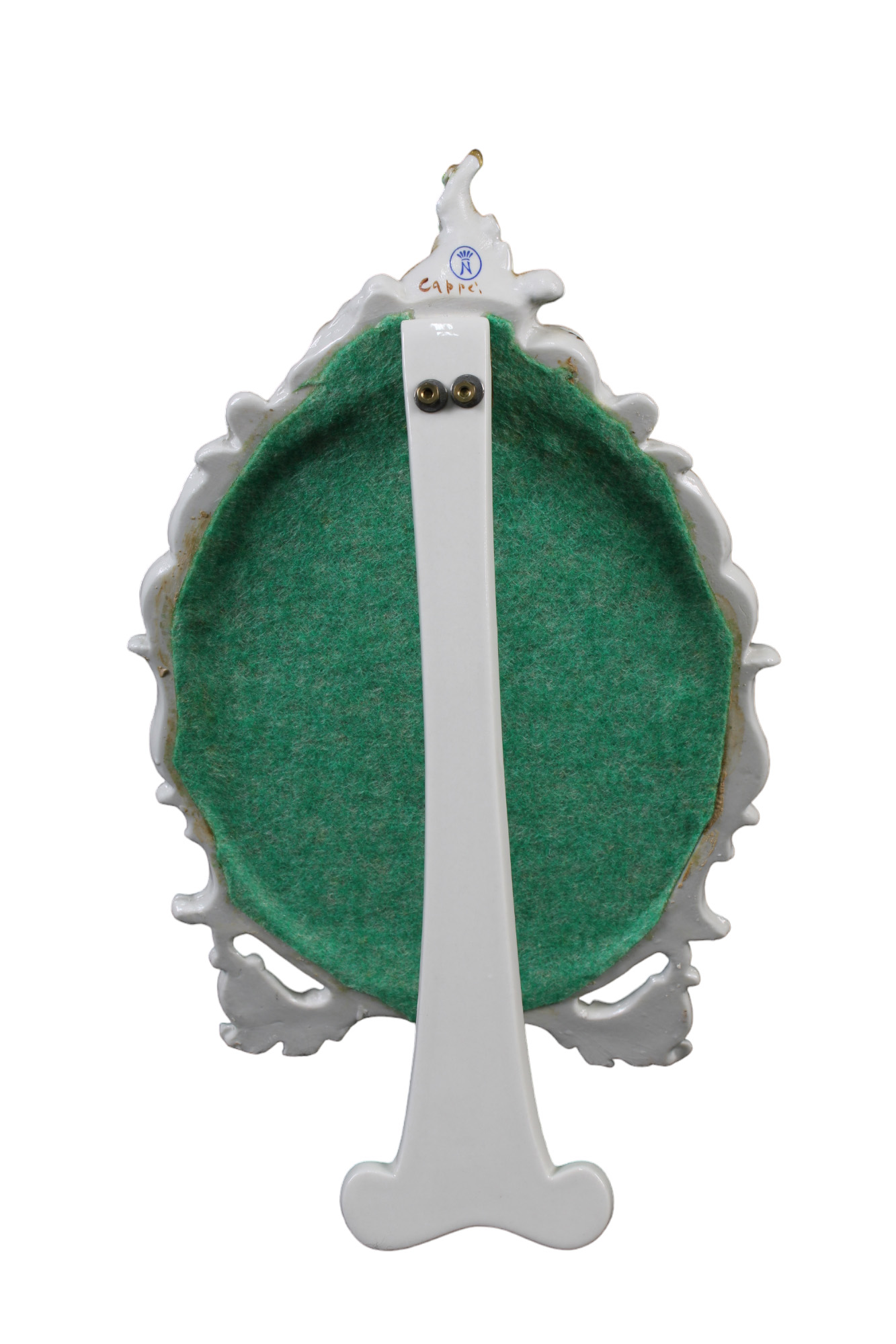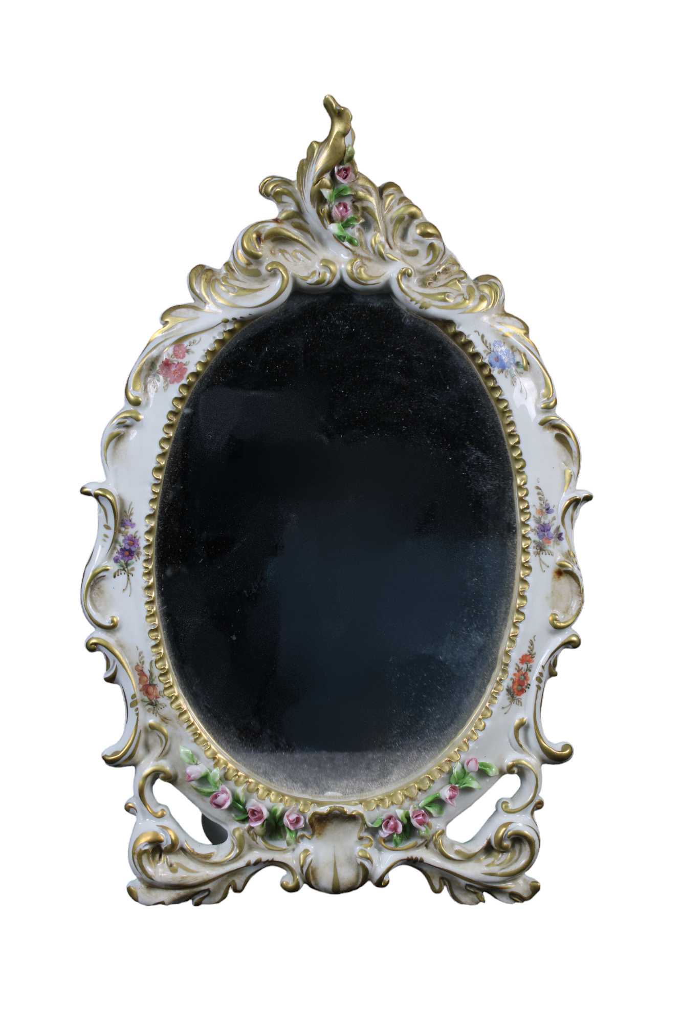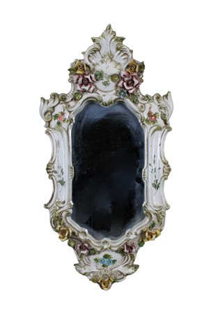 LOTTO COMPOSTO DA due piccole specchiere in porcellana policroma decorate a motivi floreali manifattura Capodimonte Napoli XX secolo h cm 57 x 29 / h cm 30 x 18