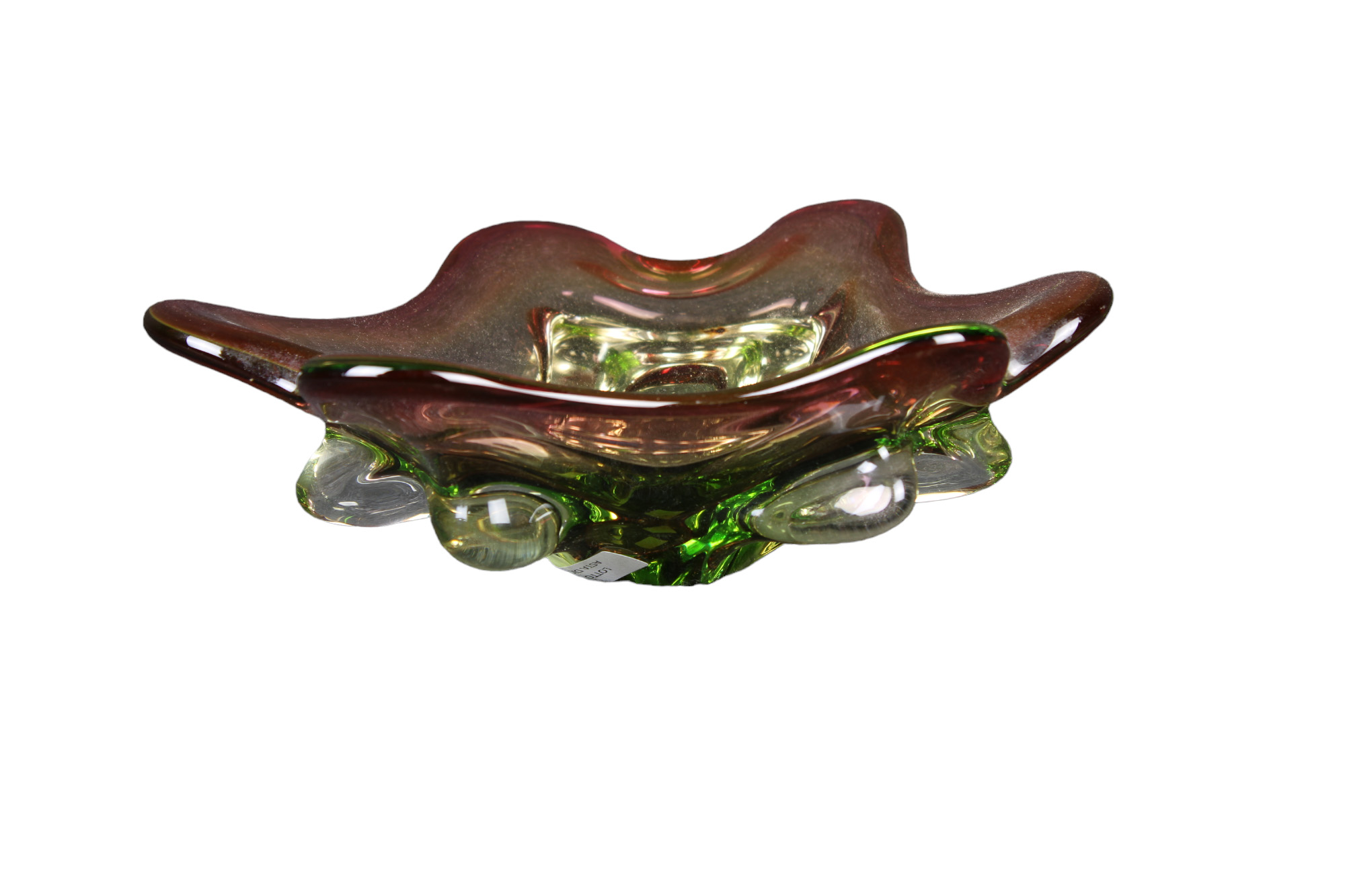 SVUOTATASCHE in vetro colorato vintage italiano h cm 25 x 20
