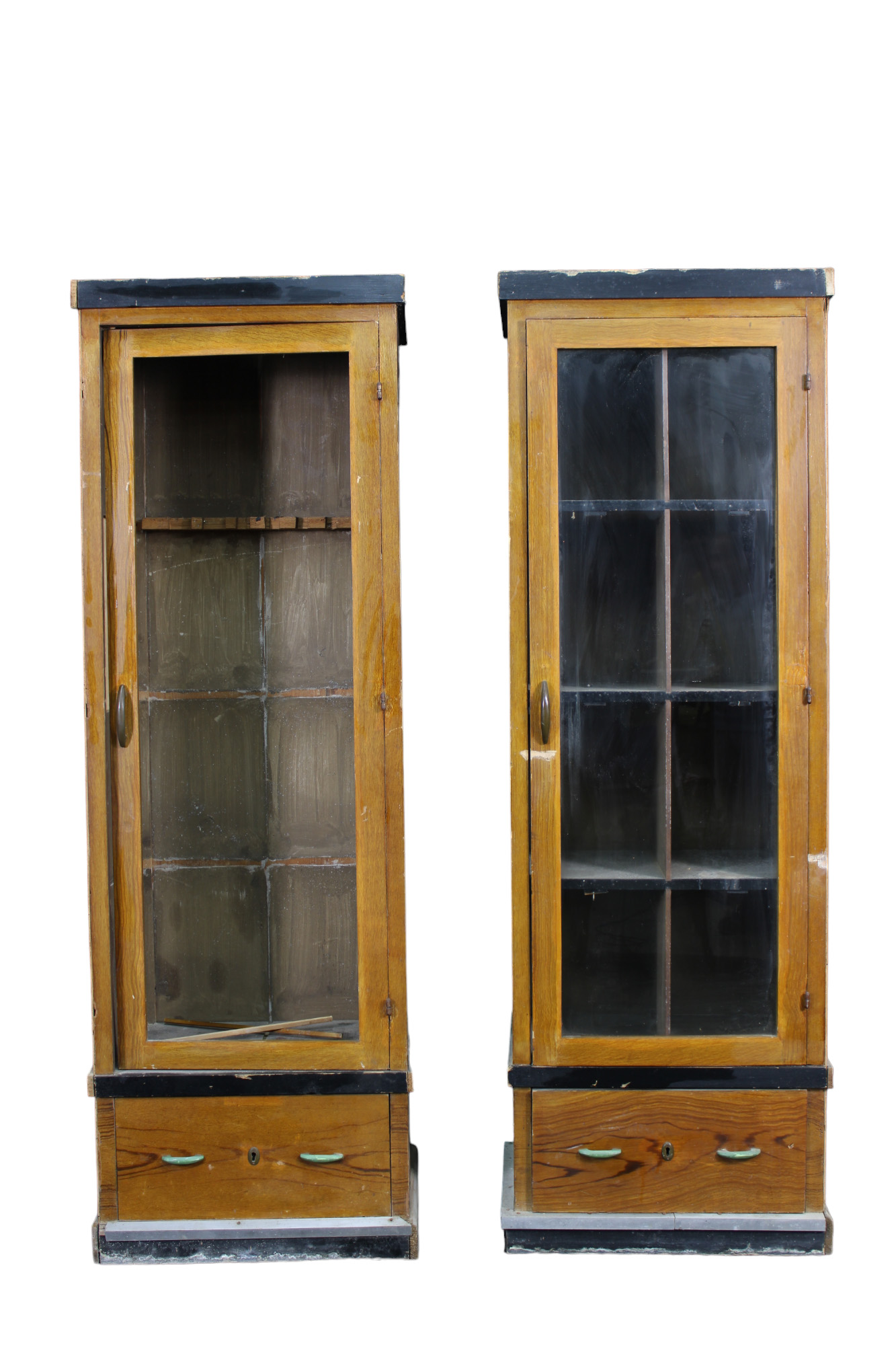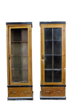 COPPIA DI VETRINE FUCILIERE in legno di noce Sicilia XX secolo h cm 191 x 64 x 40