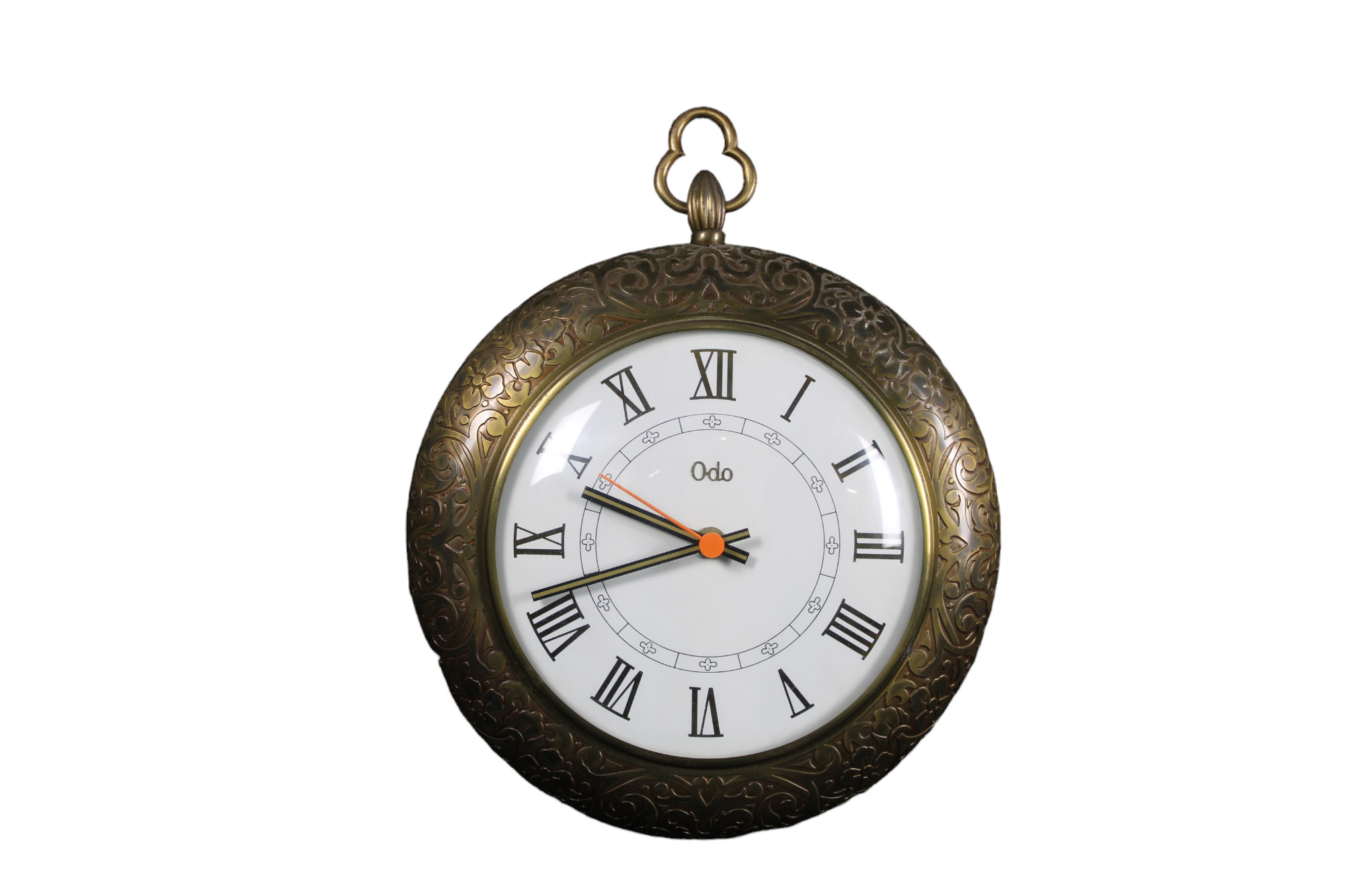 OROLOGIO DA PARETE in metallo sbalzato e inciso firma Odo, macchina al quarzo XX secolo h cm 32 x 25