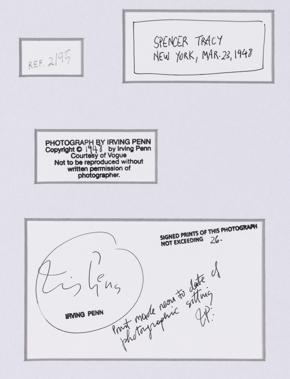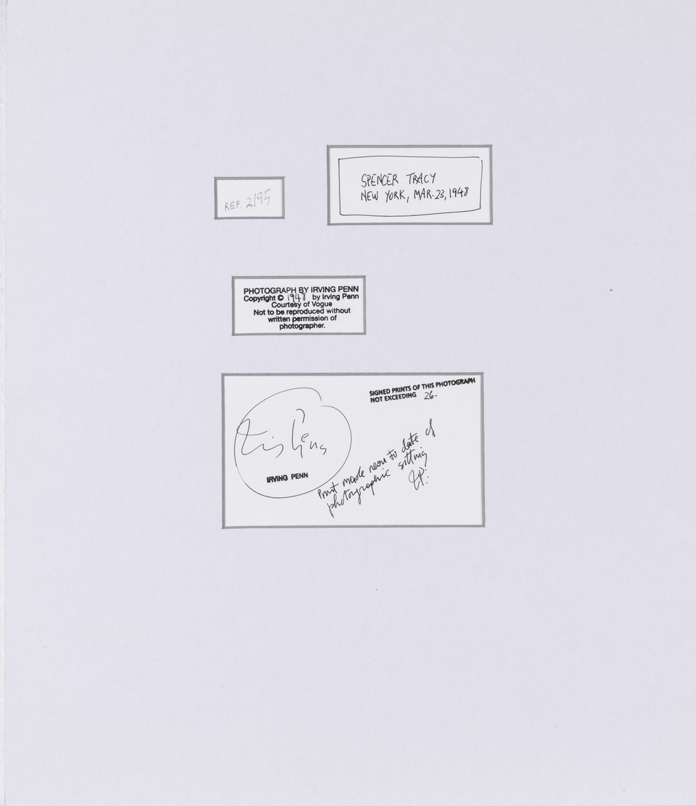 Lot 30 | Irving Penn 1917-2009 Spencer Tracy, 1948 stampa vintage, cm 38,5x33,5...