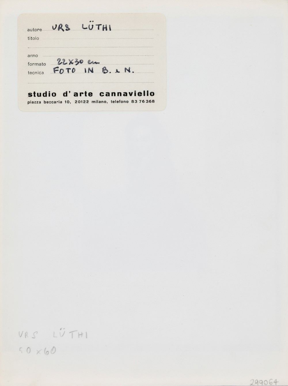 etichetta Studio d’Arte Cannaviello al retro