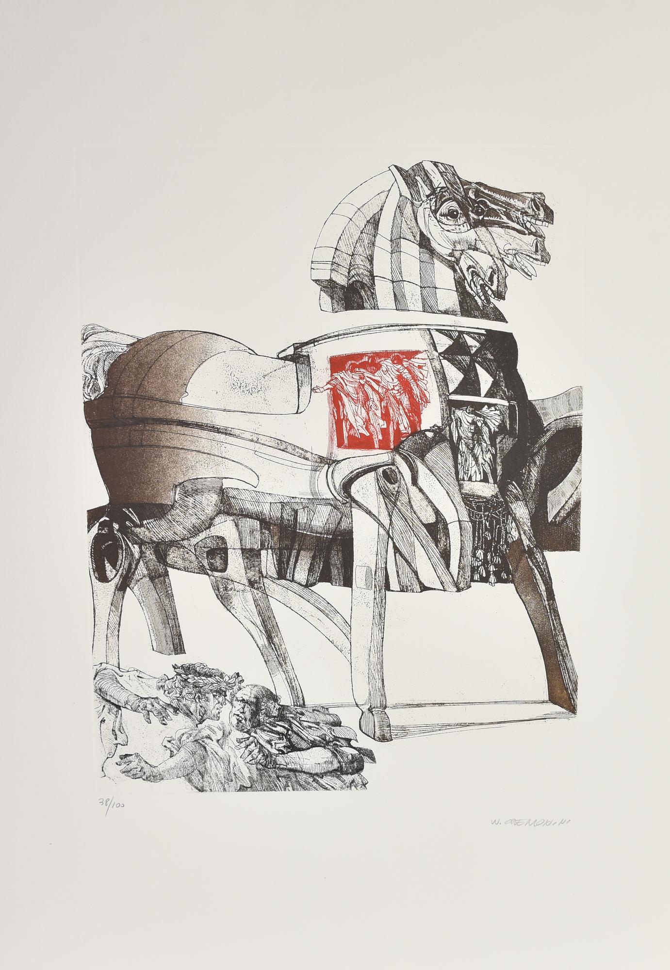 Walter Cremonini CAVALLO DI TROIA acquaforte-acquatinta su carta, battuta cm...
