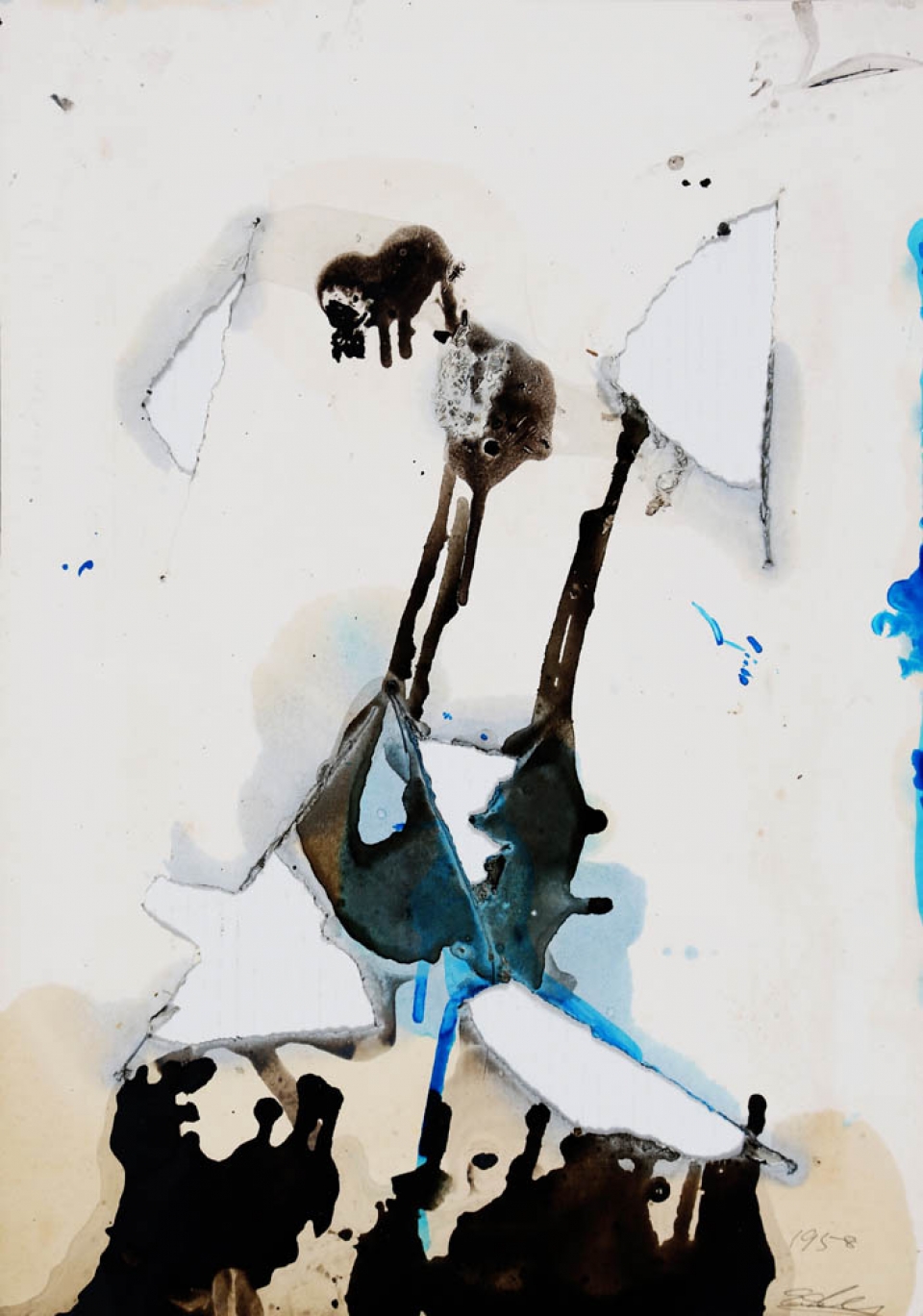 SHOZO SHIMAMOTO 1928 - 2013 Senza titolo, 1958 Tecnica mista e strappi su carta, cm. 51,4 x 36,3 Firmato e datato in basso a destra Autentica Archivio Shimamoto n. ID 1209 Prov. Collezione Privata
