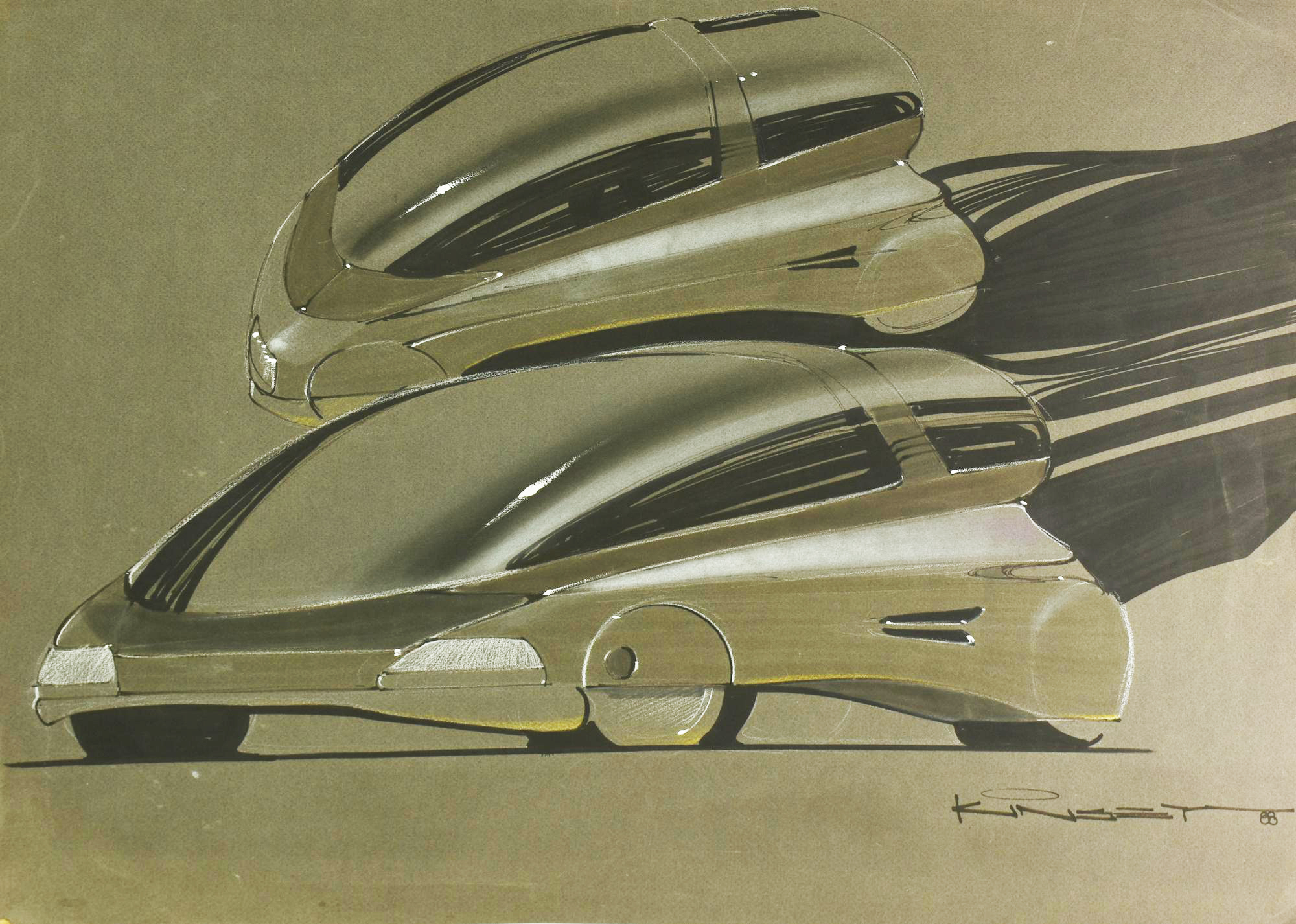 Kinsey AUTOMOBILI, 1988 tecnica mista su carta, cm 50x65 firma e data difetti