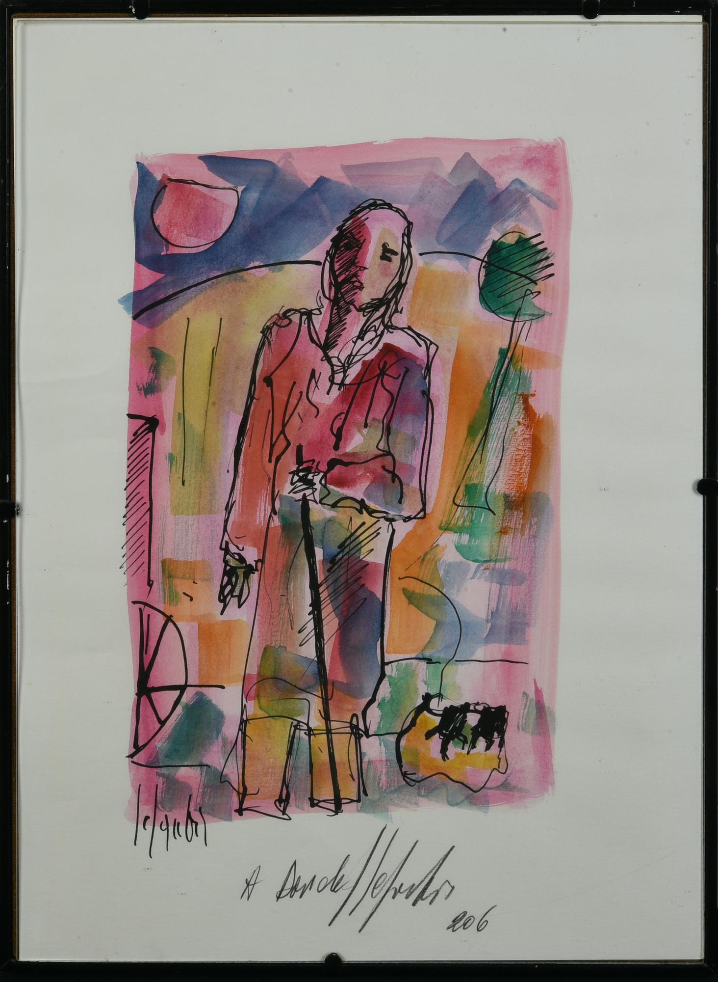 FIGURA tecnica mista su cartoncino, cm 35x25 firma e dedica ad personam