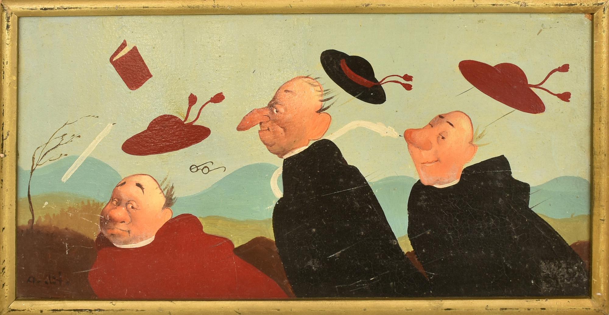 Piero Ardito CARICATURE olio su compensato, cm 19,5x40 firma Lievi difetti