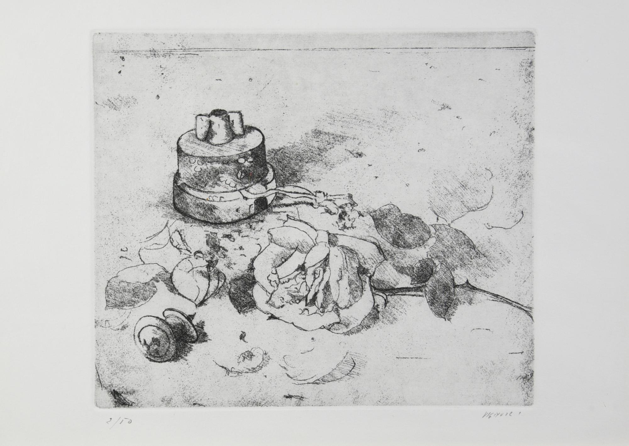 Piero Vignozzi NATURA MORTA acquaforte, cm 17,5x20,5, su foglio cm 30x40; es....