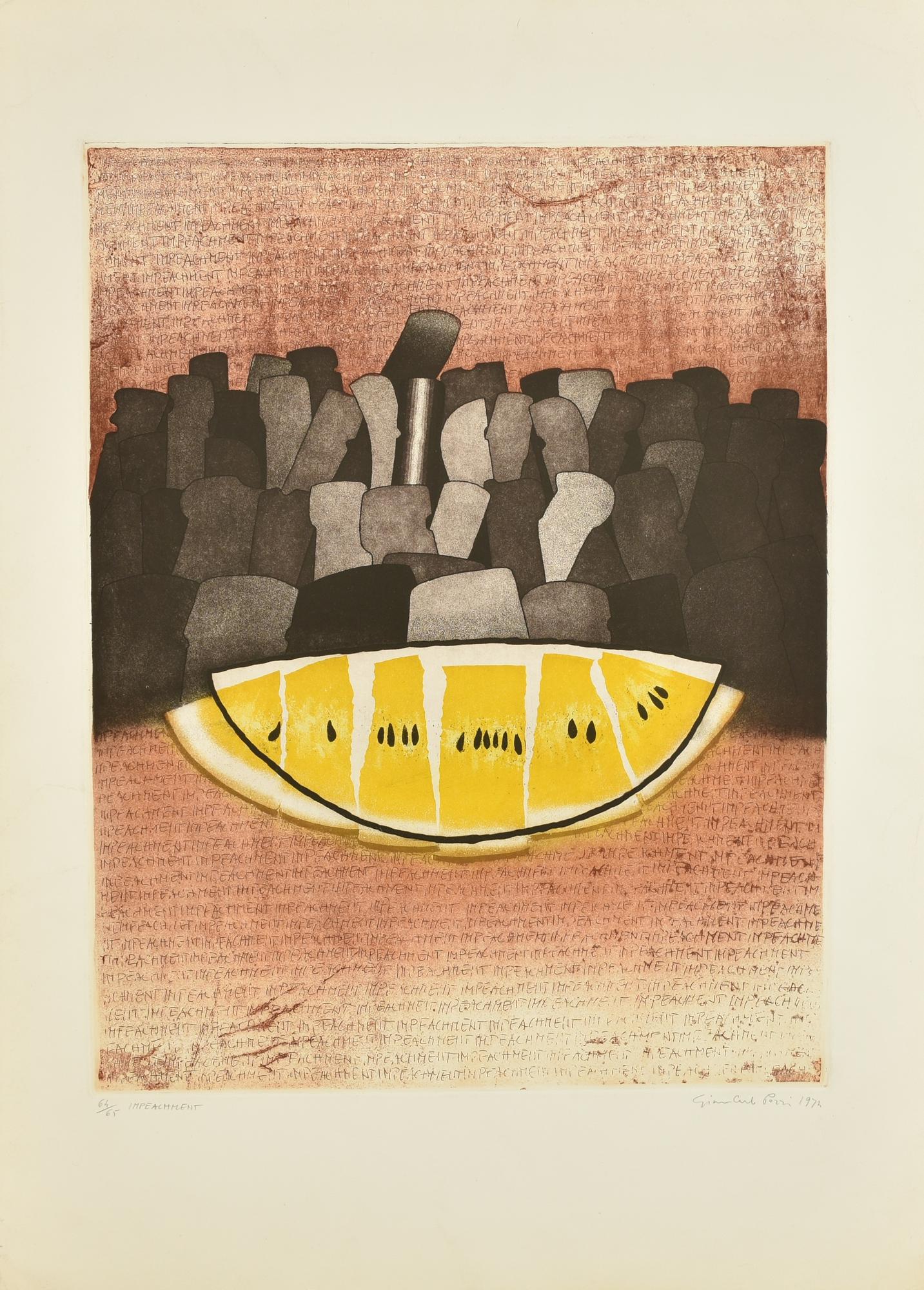 Giancarlo Pozzi IMPEACHMENT acquaforte-acquatinta su carta, battuta cm 50x39;...