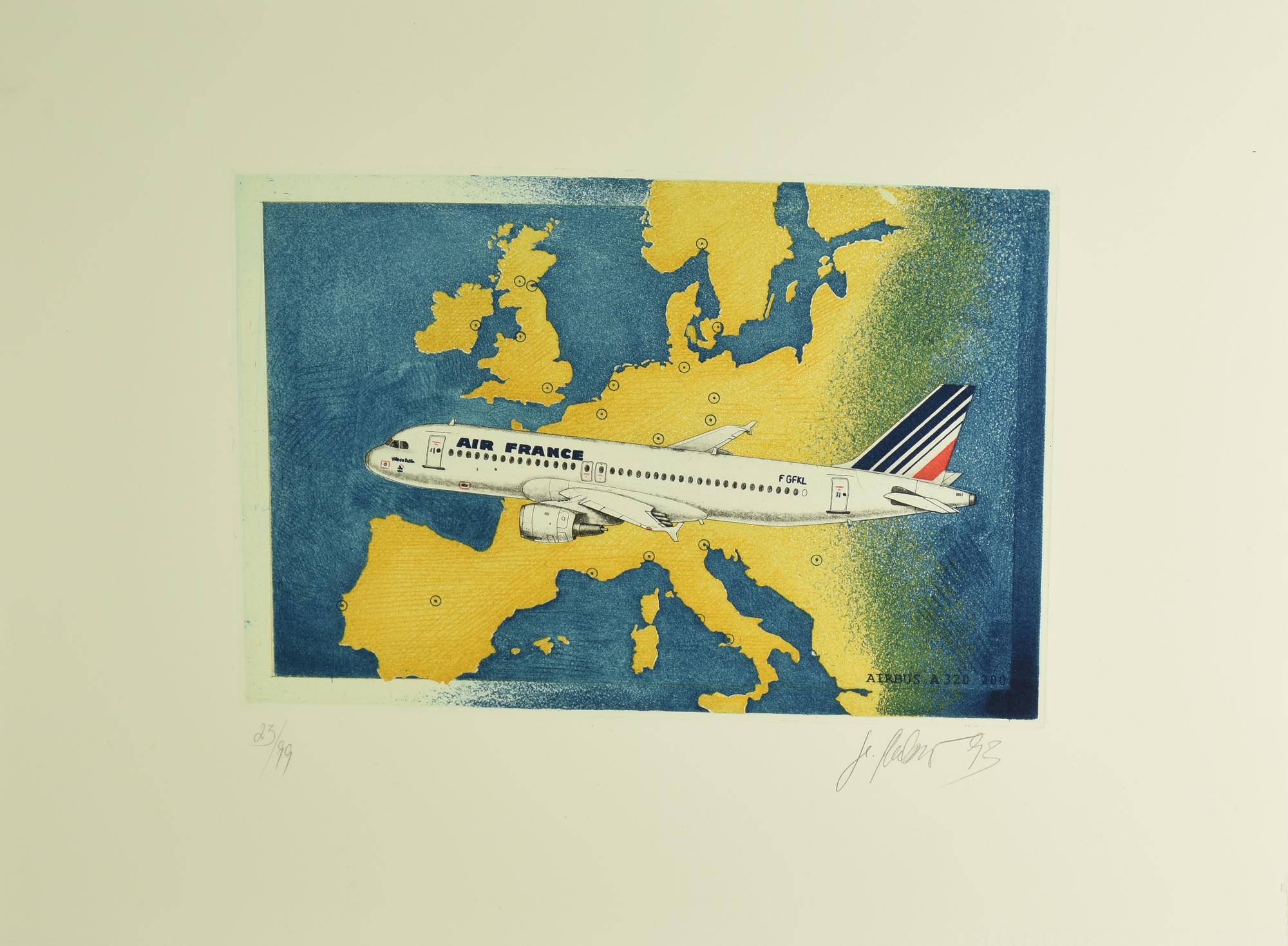 Ignoto AIR FRANCE, 1993 incisione su carta, cm 21x30 su foglio 40x50; es....