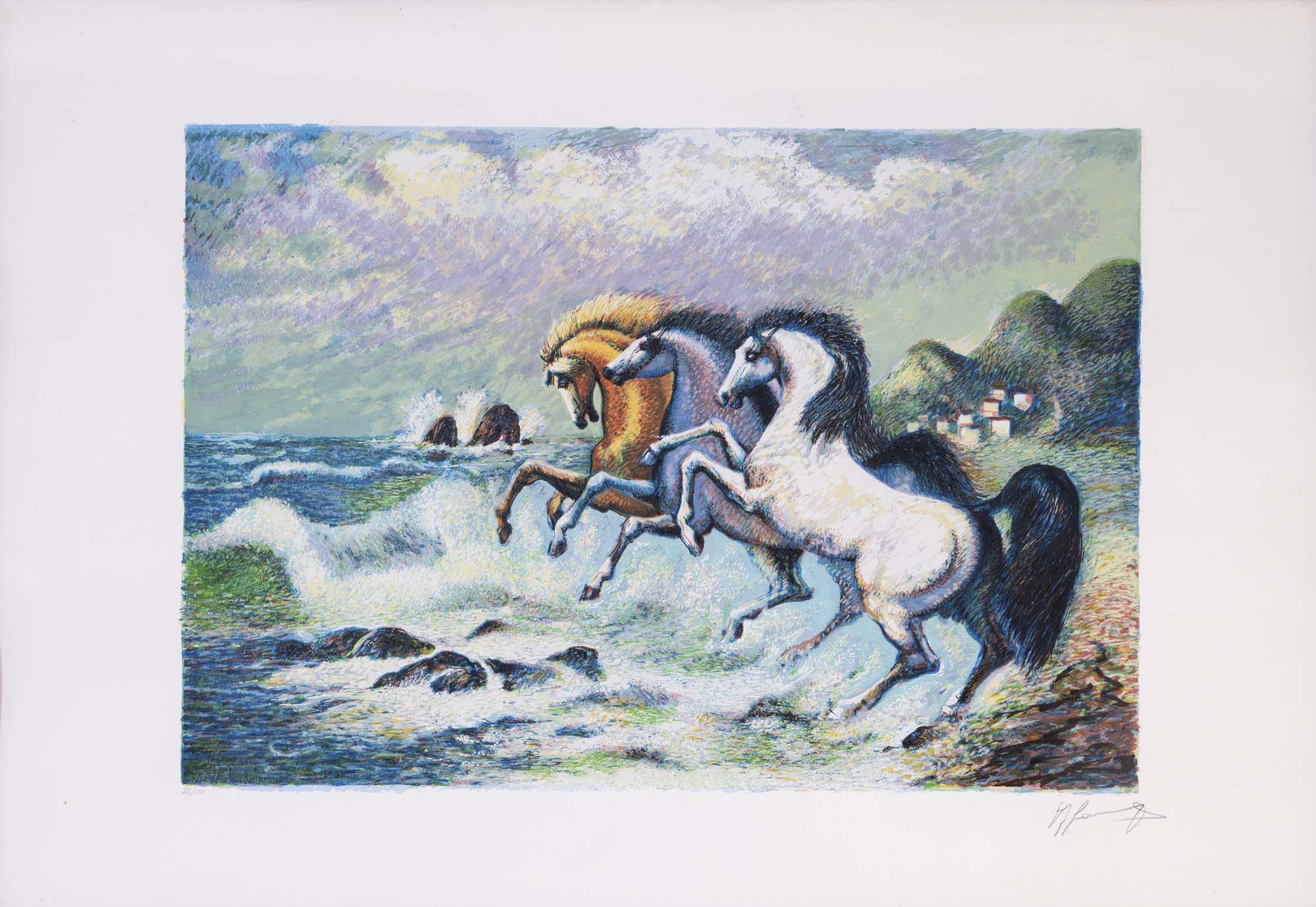 GIOVAN FRANCESCO GONZAGA (Milano, 1921 - 2007) Cavalli serigrafia es. 36x150...