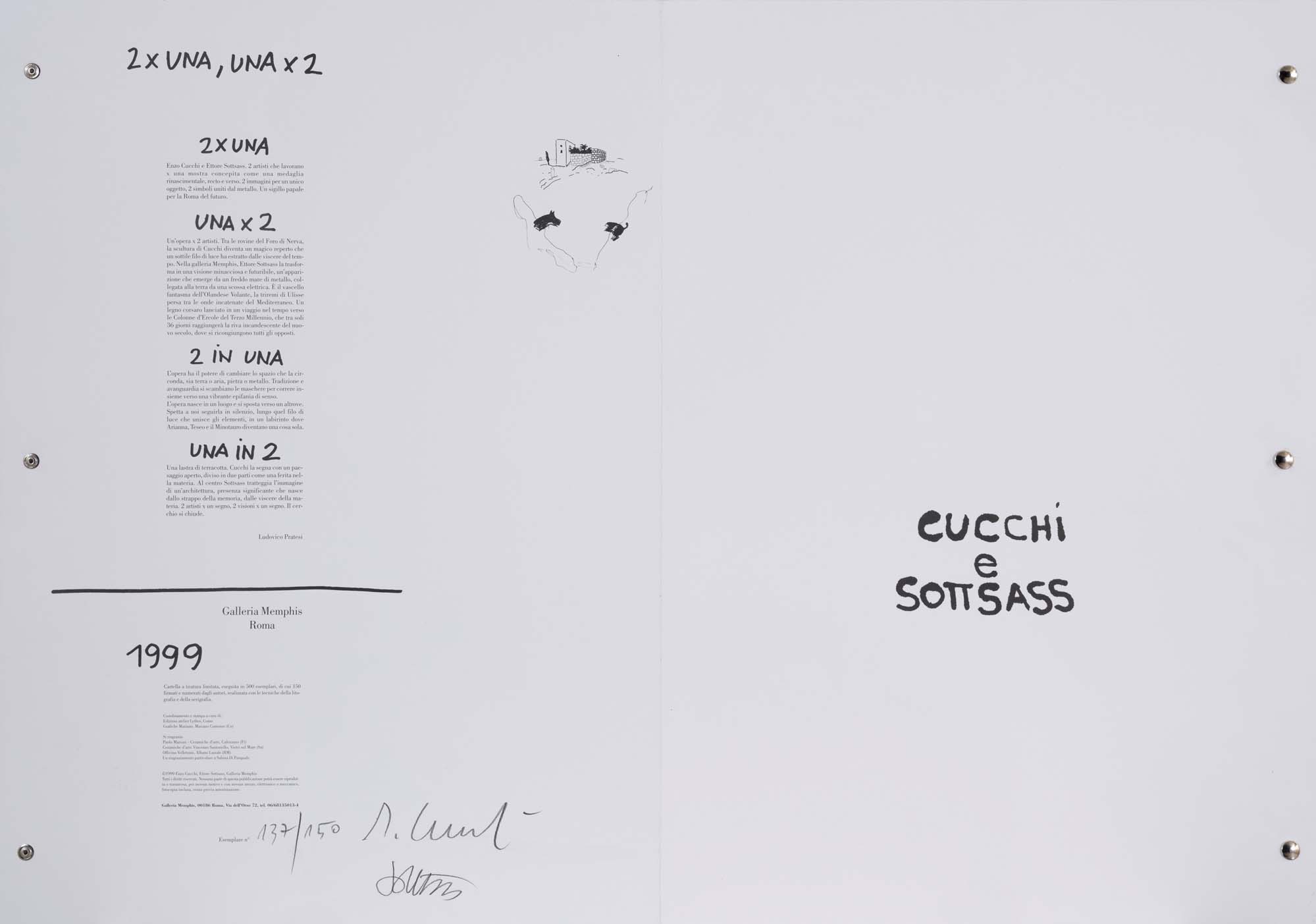 ENZO CUCCHI & ETTORE SOTTSASS 2 x una, una x 2 (1999) litografia e serigrafia...