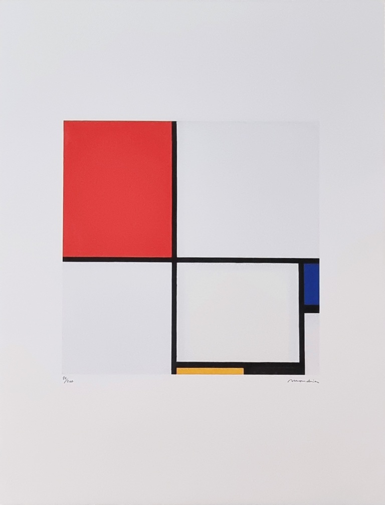 MONDRIAN PIET Paesi Bassi 1872 - New York 1944 "Senza titolo" Riproduzione litografica offset cm 50x66. Firma in stampa sul fronte in basso a destra, tiratura 86/200 e timbro a secco a sinistra. Sul retro ologramma di autenticità.