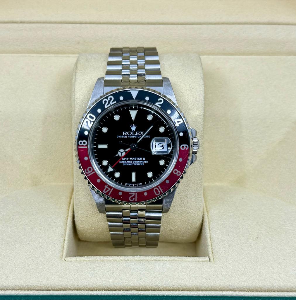 MARCA ROLEX MODELLO (OROLOGIO) GMT-MASTER II NUMERO DI REFERENZA 16710 CARICA AUTOMATICO MATERIALE DELLA CASSA ACCIAIO MATERIALE CINTURINO ACCIAIO ANNI 90 CONDIZIONE OTTIMO (DI SECONDA MANO, SEGNI DI USURA ASSENTI O APPENA VISIBILI) CORREDO DOCUMENTI ORIGINALI ROLEX, NO BOX CARICA AUTOMATICO MATERIALE DELLA CASSA ACCIAIO DIAMETRO 40 MM IMPERMEABILE 10 ATM MATERIALE LUNETTA ACCIAIO VETRO ZAFFIRO QUADRANTE NERO NUMERI SUL QUADRANTE SENZA NUMERI MATERIALE CINTURINO ACCIAIO COLORE CINTURINO ACCIAIO CHIUSURA DÉPLOYANTE MATERIALE CHIUSURA ACCIAIO