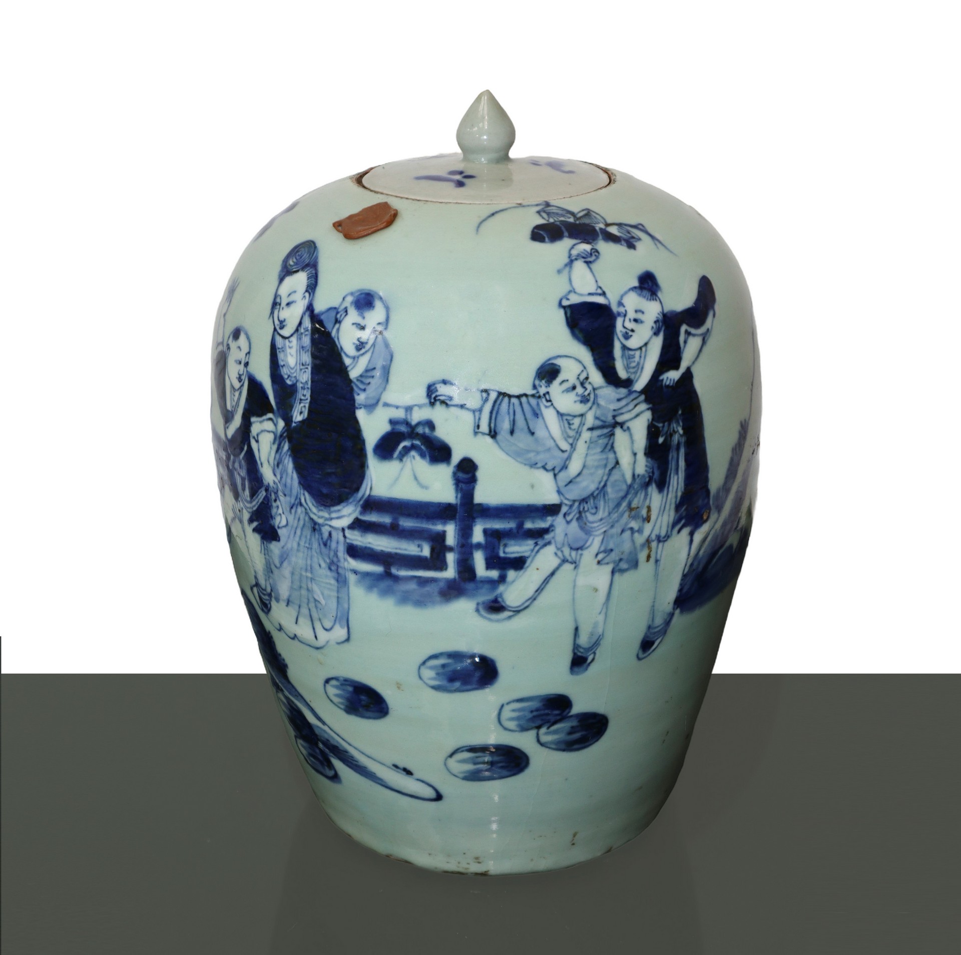 Grande urna cinese in porcellana con coperchio, nineteen° secolo