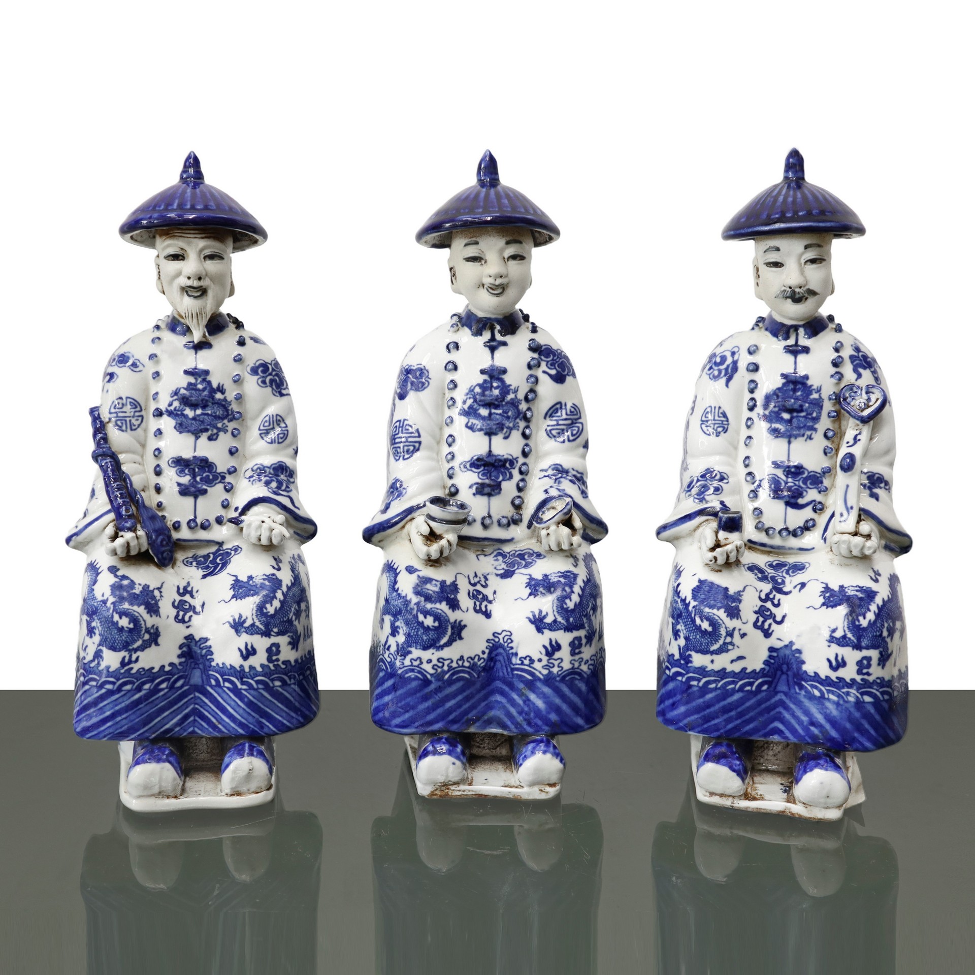 Lot 100 | Trittico di statue raffiguranti tre generazioni di imperatori cinesi, le tre età dell'uomo