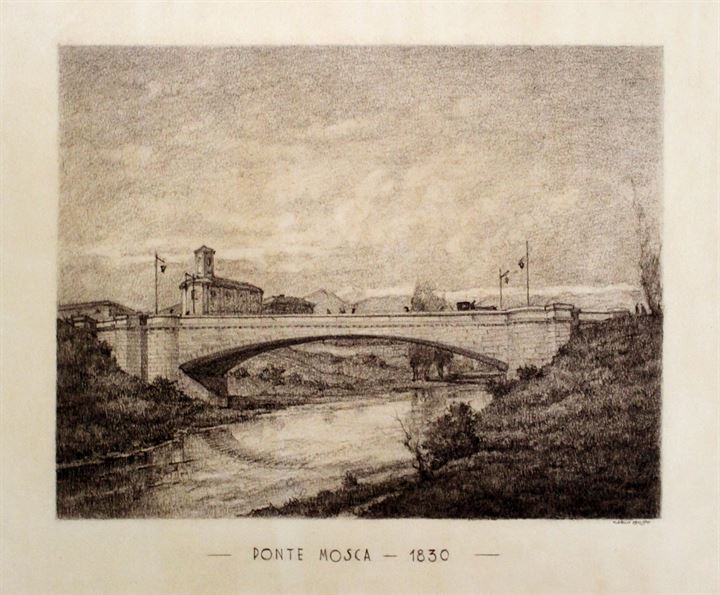 MUSSO CARLO Balangero (TO) 1907 - 1968 "Il ponte Mosca nel 1830" 26,5x34,5...