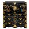 Due grandi sportelli nella parte superiore con all'interno vano con mensola e tre cassetti. Parte inferiore con numero 3 cassetti. Presenti piccole mancanze