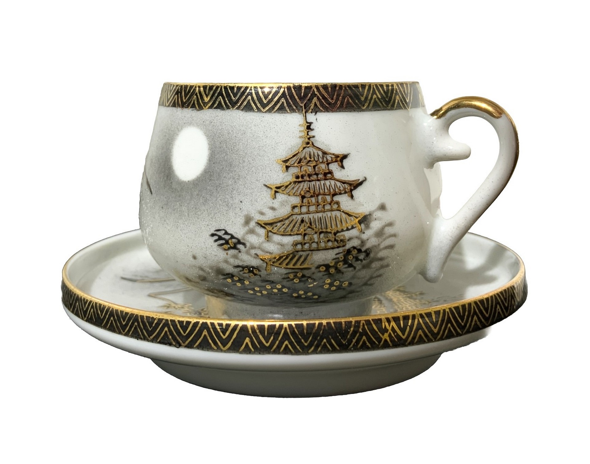 Servizio Satsuma “Kyoto Handicraft center” Set 6 tazzine con piattinoSet 6 tazzine con piattino