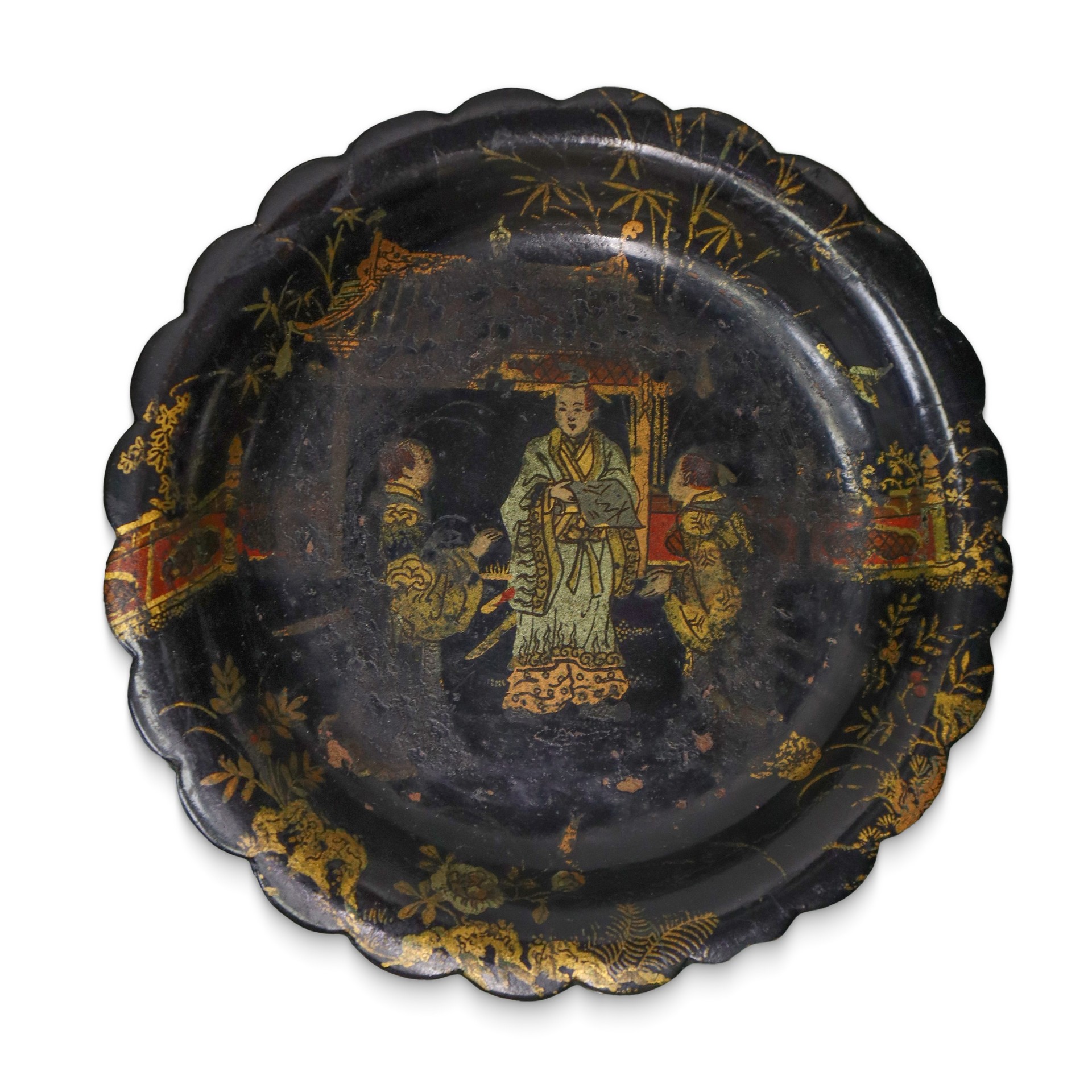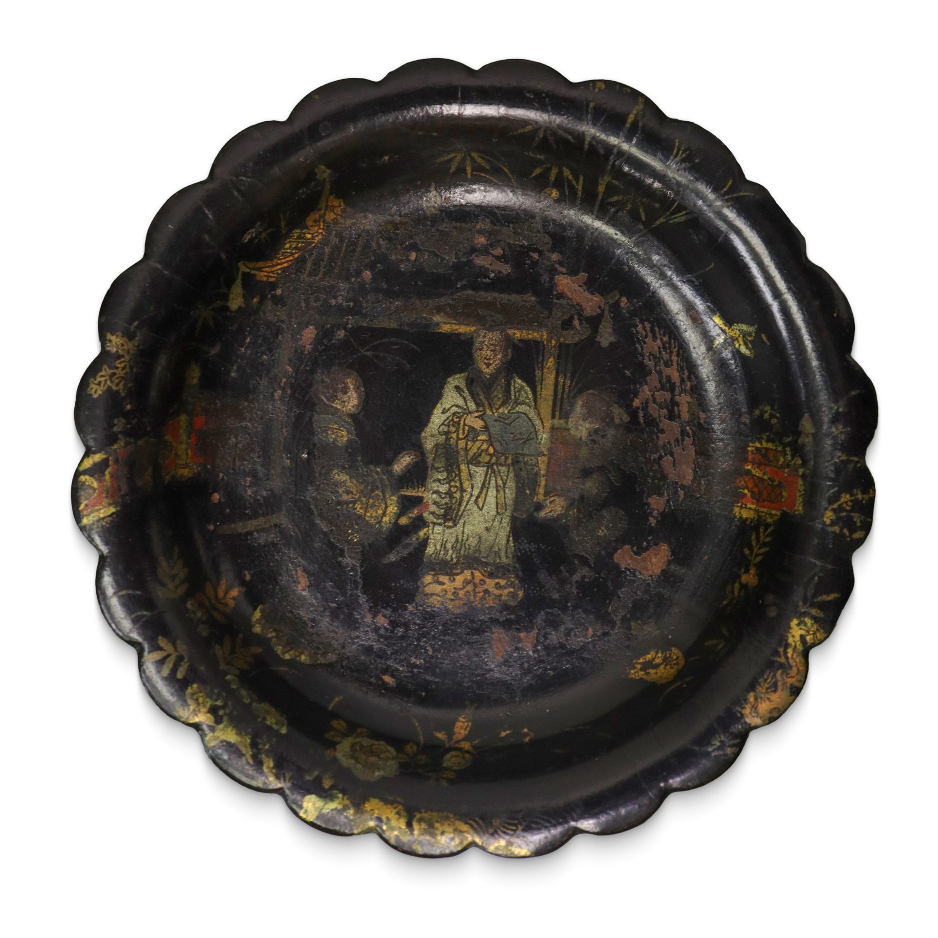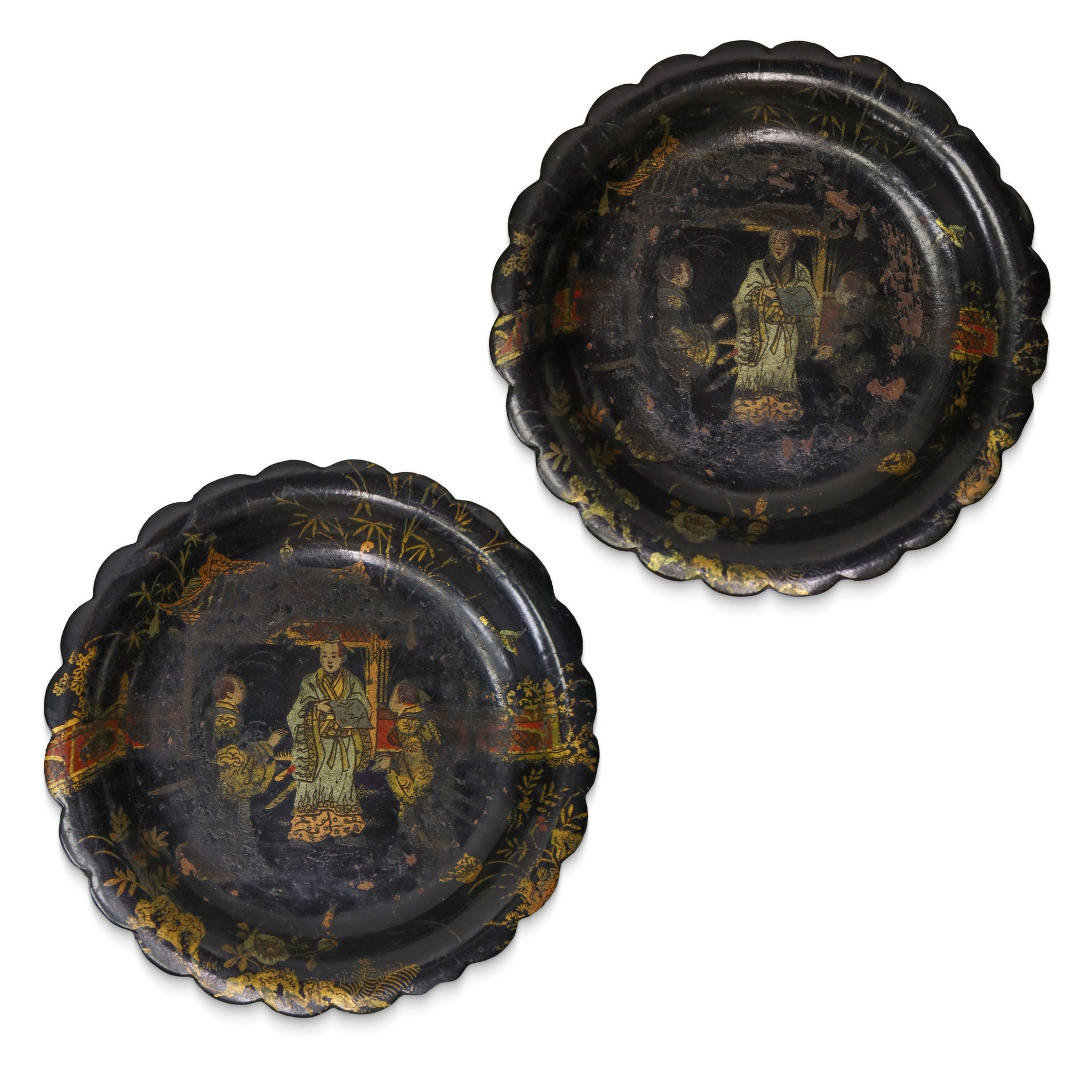 Coppia di piattini orientali in papier marché con decorazioni policrome e dorate