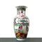 Vaso cinese in porcellana bianca decorato con scene di vita popolare e fiori