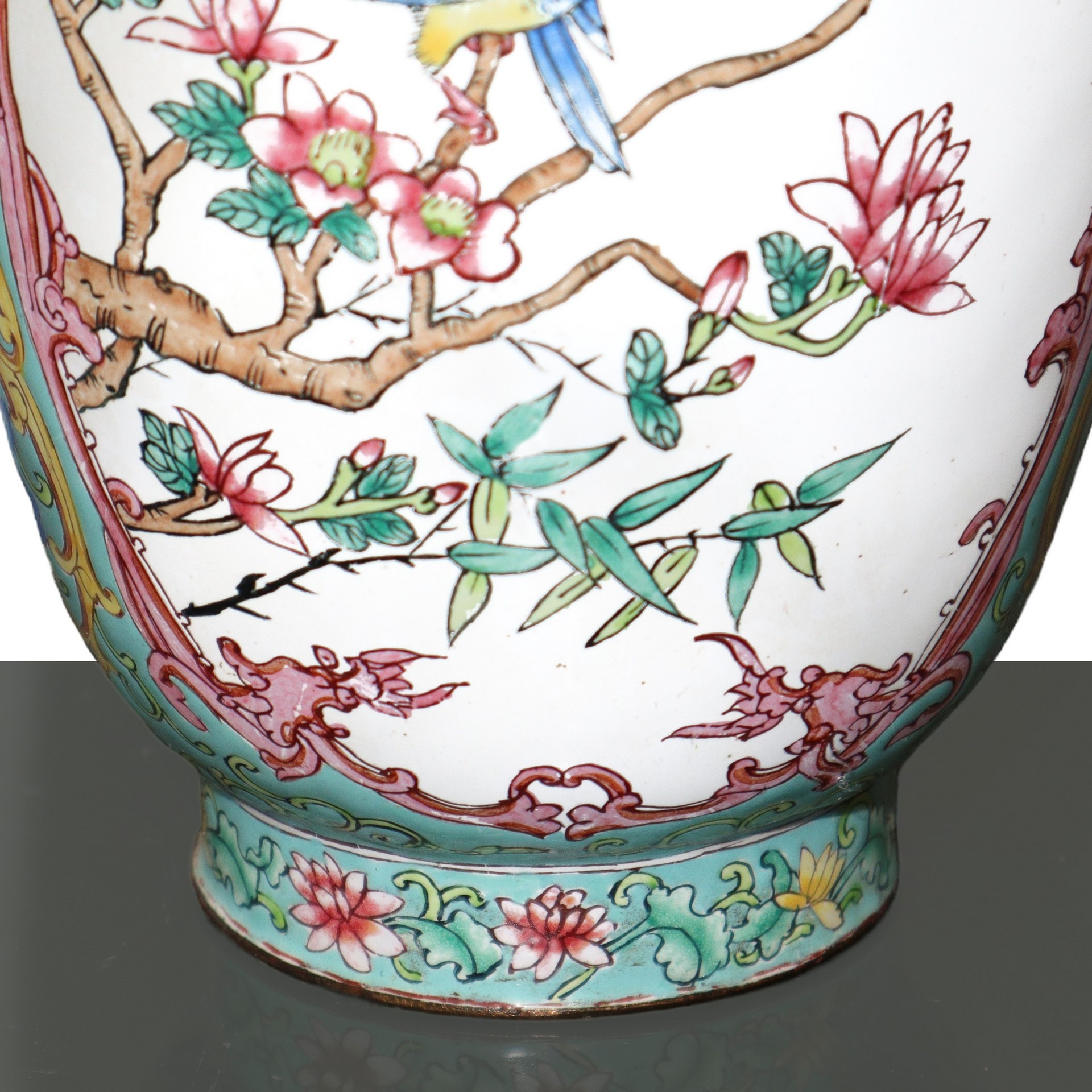 Vaso cinese della dinastia Quing in porcellana dipinto con decorazioni di fiori e uccelli