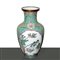 Vaso cinese della dinastia Quing in porcellana dipinto con decorazioni di fiori e uccelli H cm 23.5x12.5 Vaso cinese in pocellana con sfondo verde acqua, decorazioni floreali policrome e uccelli appoggiati sui rami. Vaso cinese in pocellana con sfondo verde acqua, decorazioni floreali policrome e uccelli appoggiati sui rami.