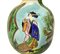Coppia di vasi dipinti con scene di genere cinesi, inserti in oro su base beije.